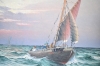 13497. Johan Ossian Andersson olja på duk, "Segelbåt", mått 58 x 84 cm