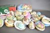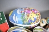 11484. Julgran med belysning höjd 180 cm, plåtburkar och påskägg bla stort inplastat, längd på stort påskägg 42 cm