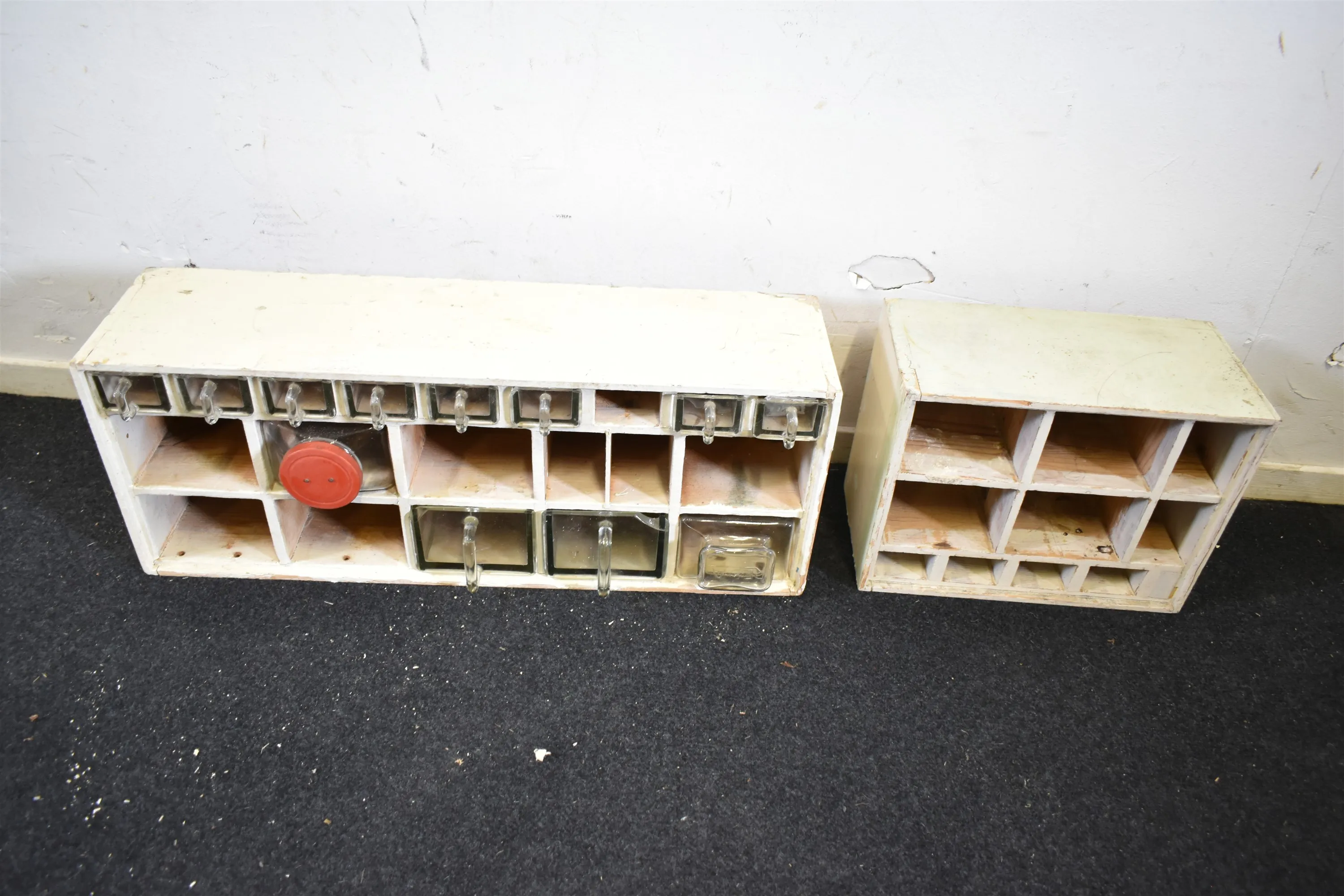 7287. Kökshyllor 2 st, ej komplett, skav finns längsta 75 cm
