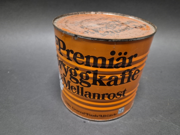 18803. Kaffeburk, plåt, Premiär Bryggkaffe, obruten, höjd 14.5 cm