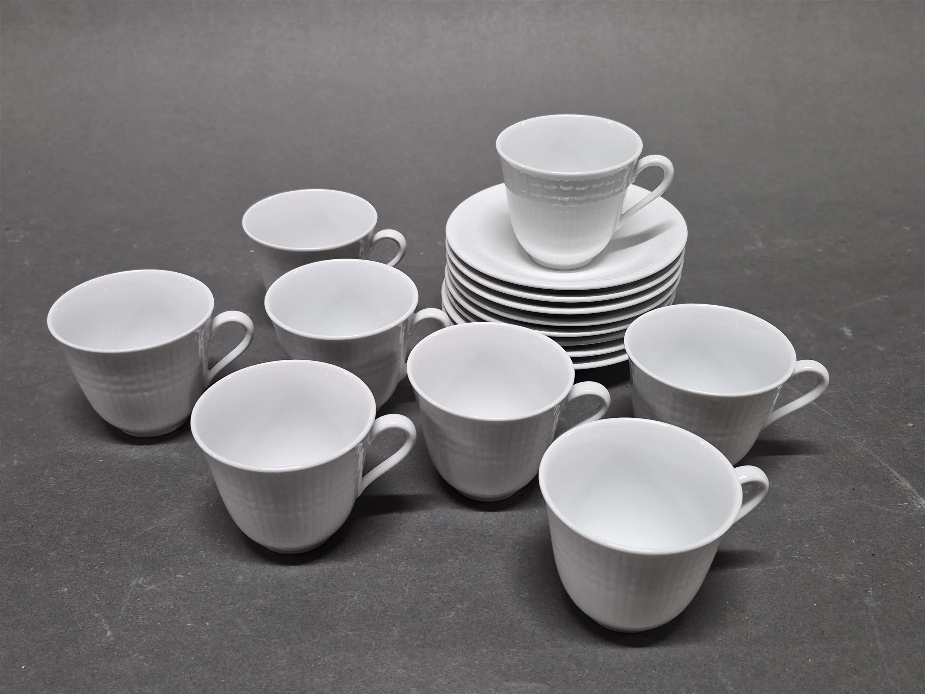 18960. Kaffekoppar med fat, 8 st Rörstrand, Swedish Grace höjd kopp 6.5 cm