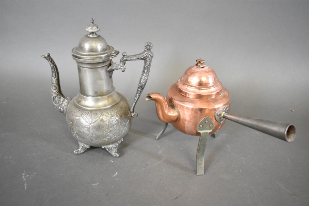 14512. Kaffepetter koppar & kaffekanna, pläter högsta 30 cm