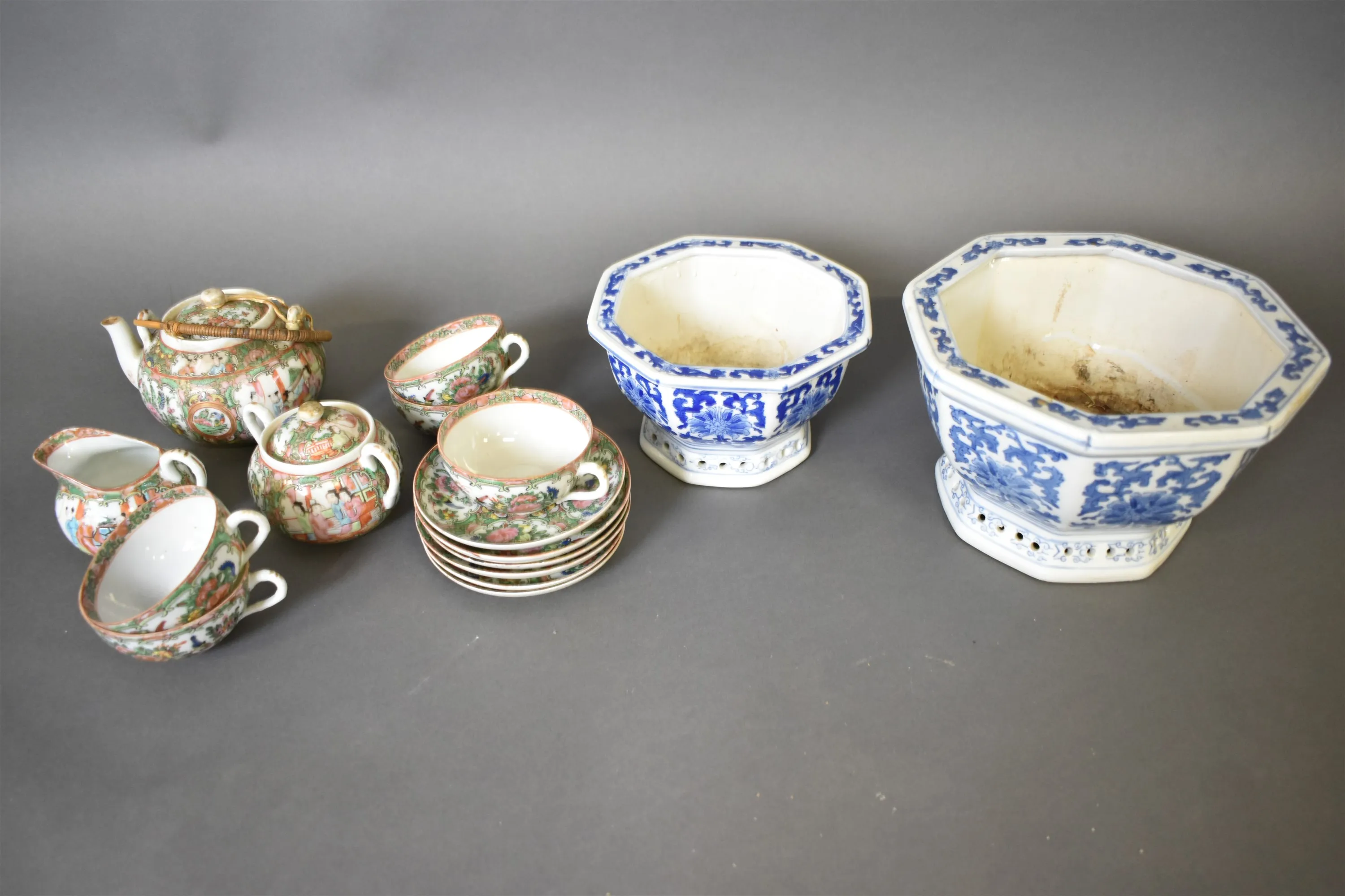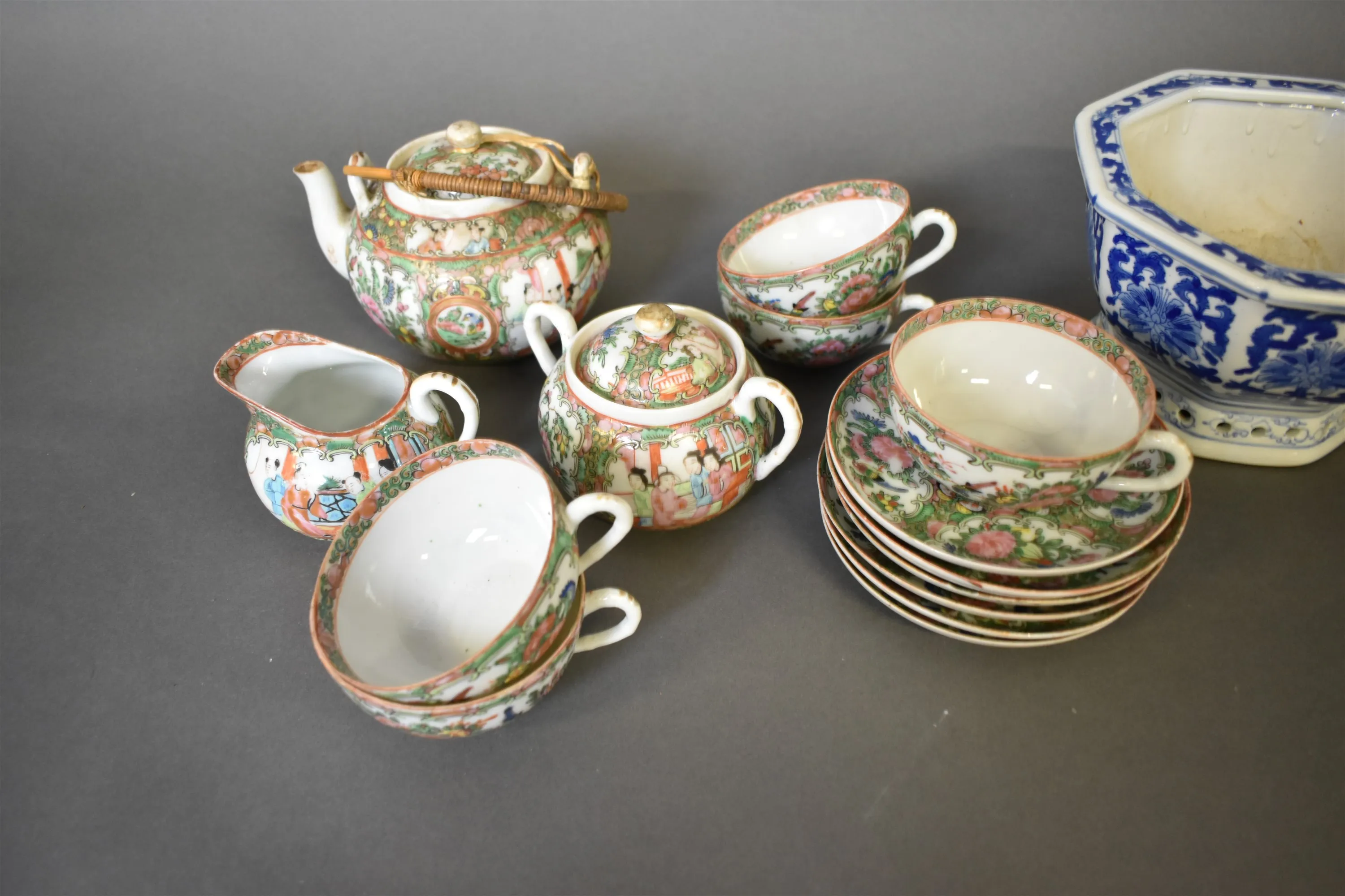 12375. Kaffeservisdelar & ytterfoder 2 st asiatisk dekor högsta 15 cm