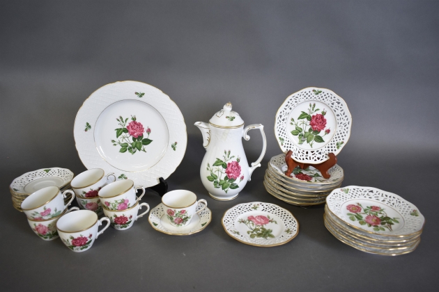 15273. Kaffeservisdelar Schumann Arzberg Fyrklövern "Klassiska Rosor", största diameter 28 cm