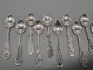 18454. Kaffeskedar 12 st i silver, kattfot, längd 9,5 cm, totalvikt 108 gram