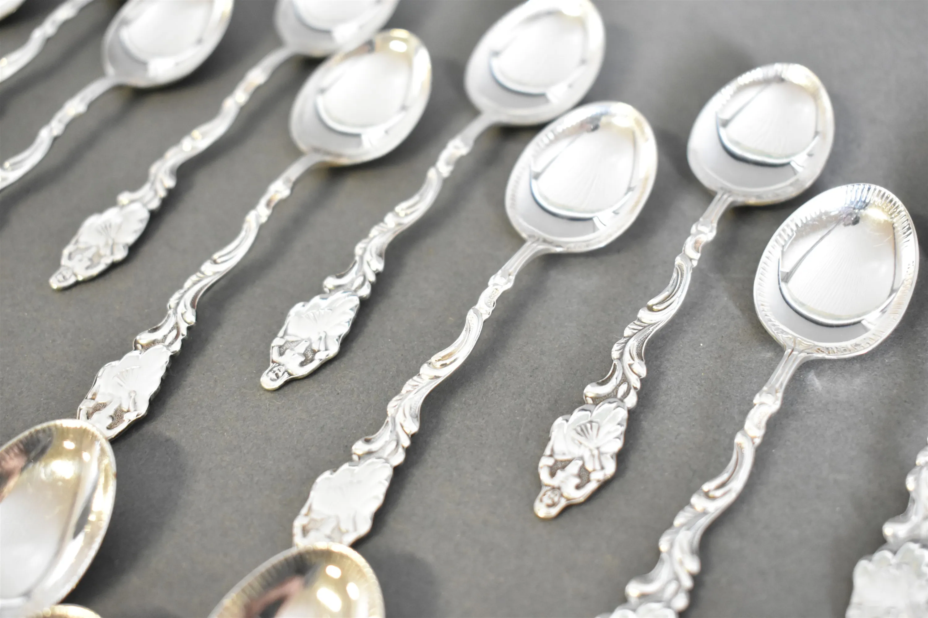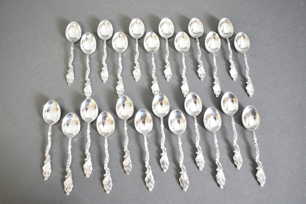 14747. Kaffeskedar 24 st, silver, längd 10 cm, totalvikt 264,61 gram