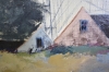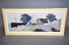 657. Kai Kristensen olja på duk "Fiskeläge på vinter" mått 43 x 94 cm