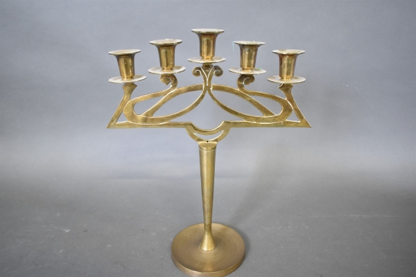 11161. Kandelaber, jugend stil, mässing höjd 47 cm