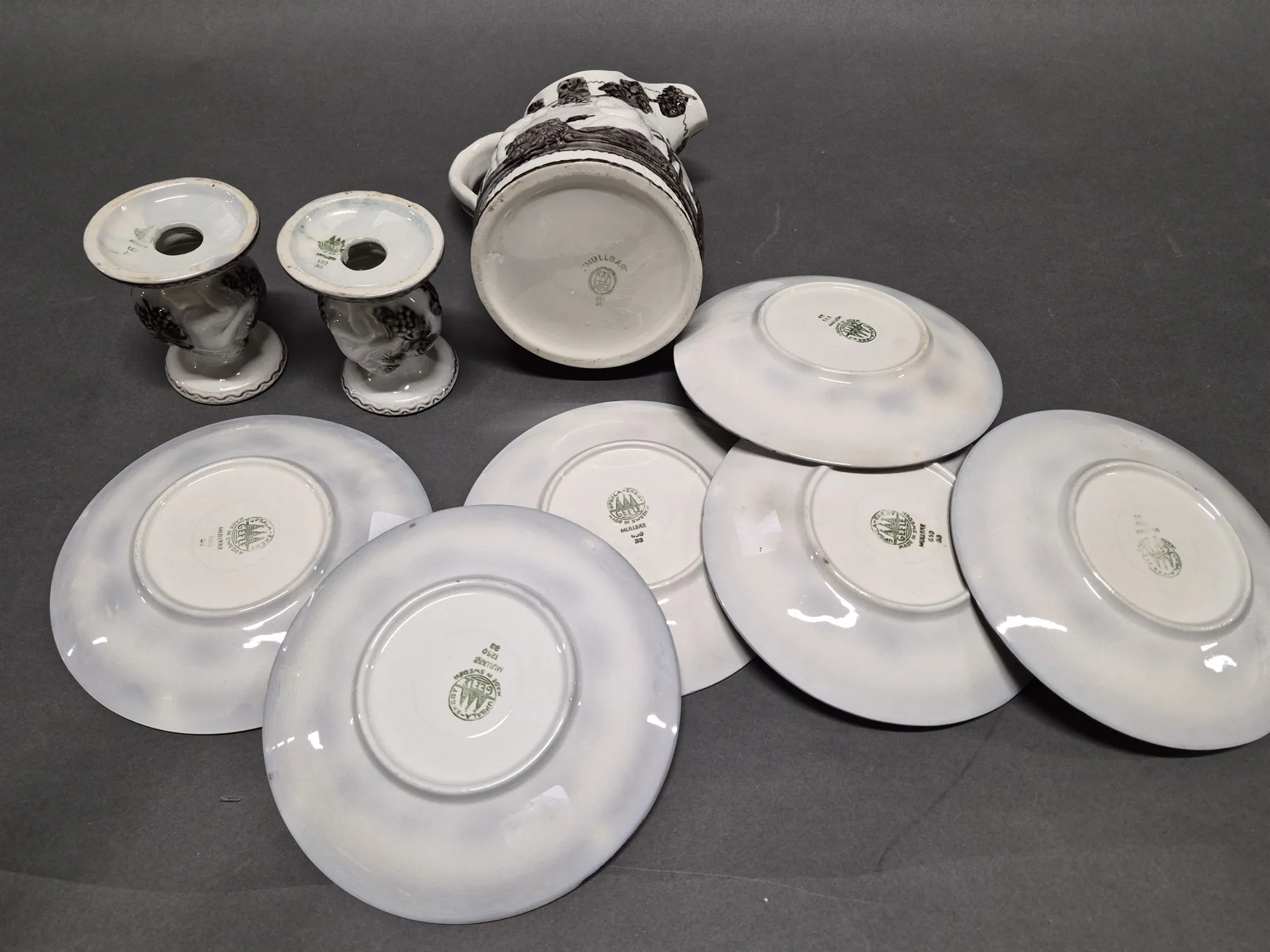 18539. Kanna, ljusstakar & assietter Mullbär, Gefle, högsta 19 cm