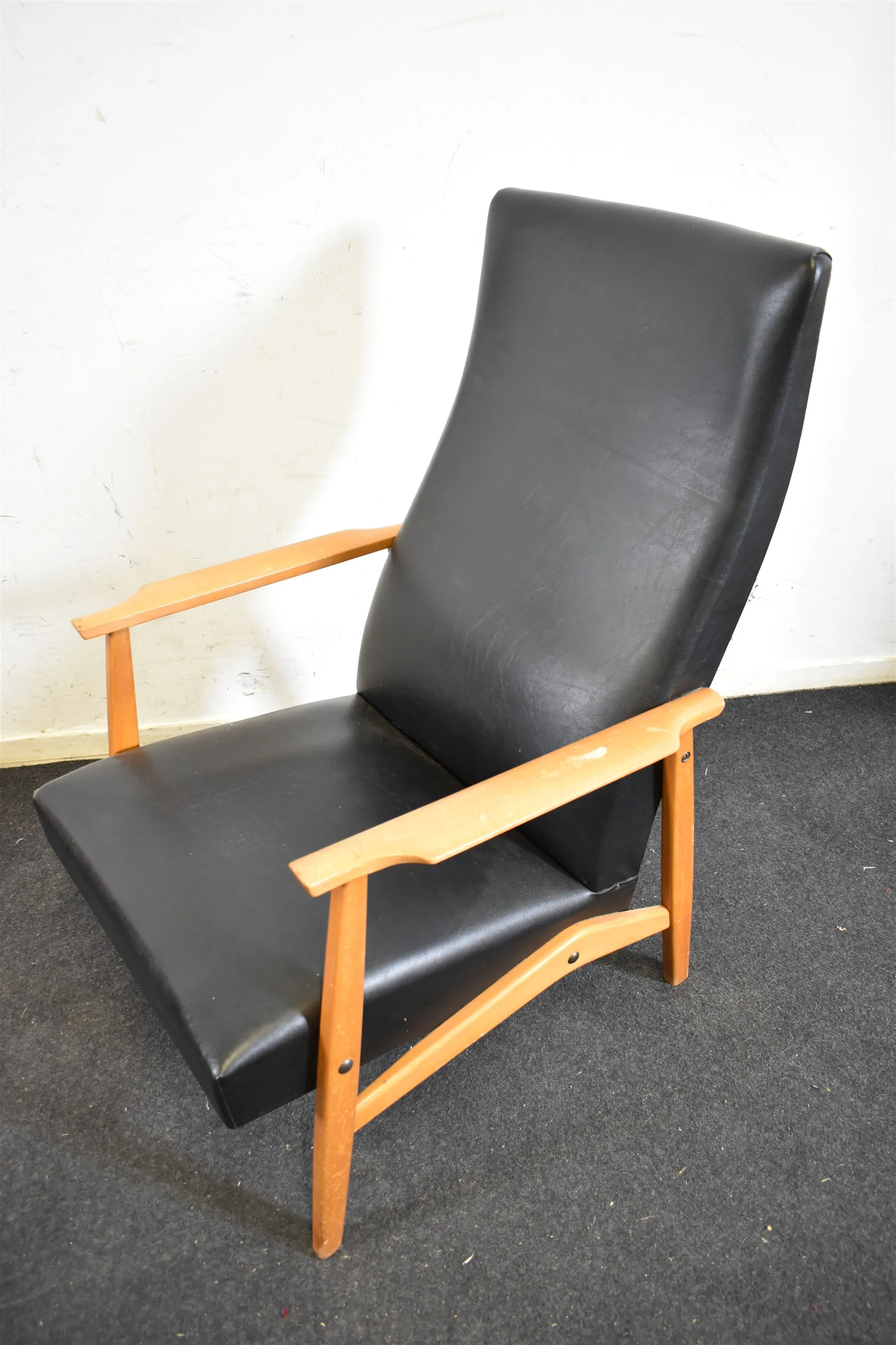 15021. Karmfåtölj, retro, skai, höjd ca 100 cm