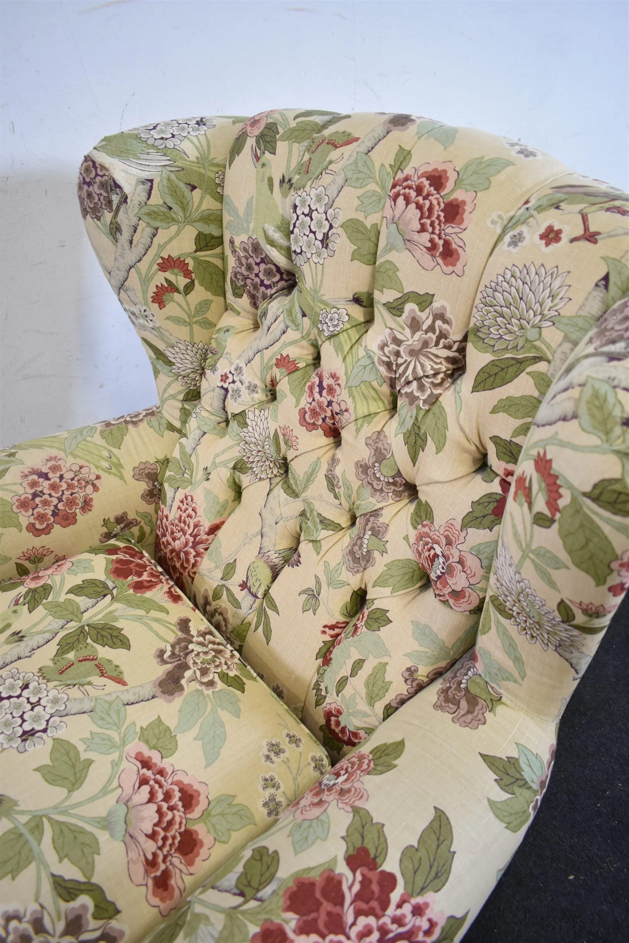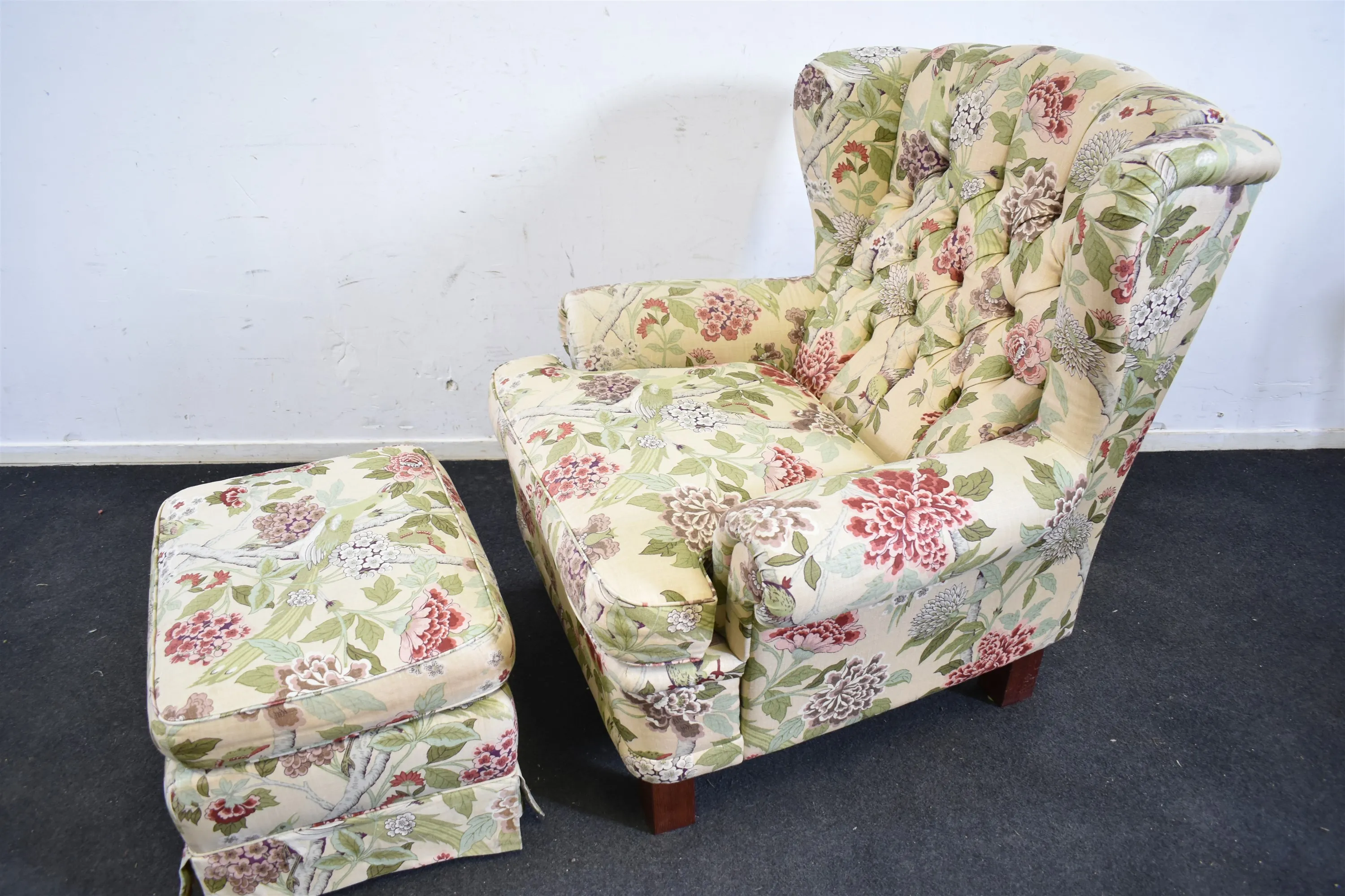 13317. Karmfåtölj Trensum med fotpall, blommigt typ, höjd 102 cm, bredd 102 cm, djup 113 cm