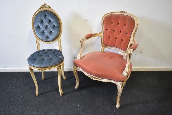 11415. Karmstol & stol, fransk rokokostil, höjd 97 cm