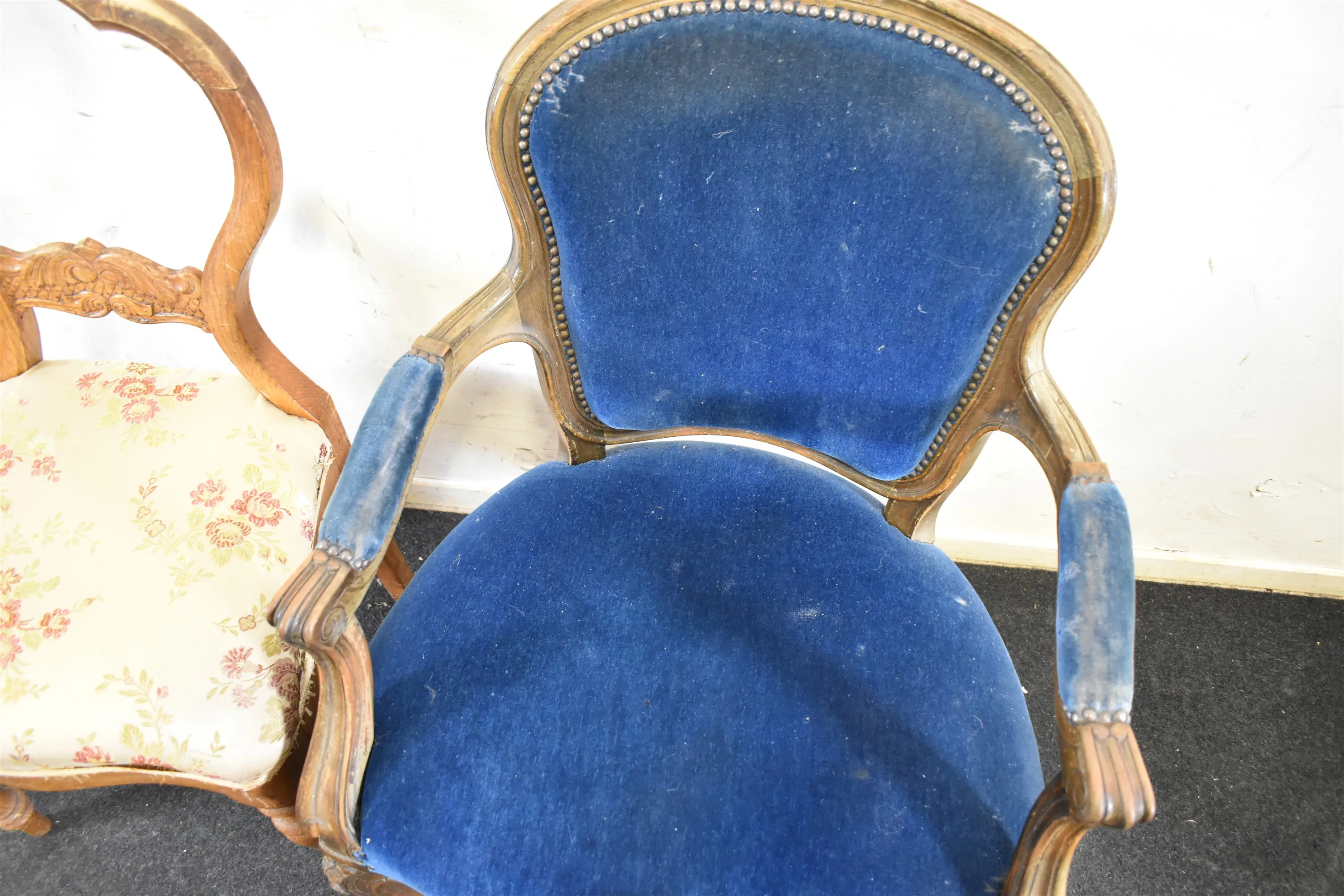 12952. Karmstol fransk rokokostil och stol sekelskiftet, höjd 75 cm