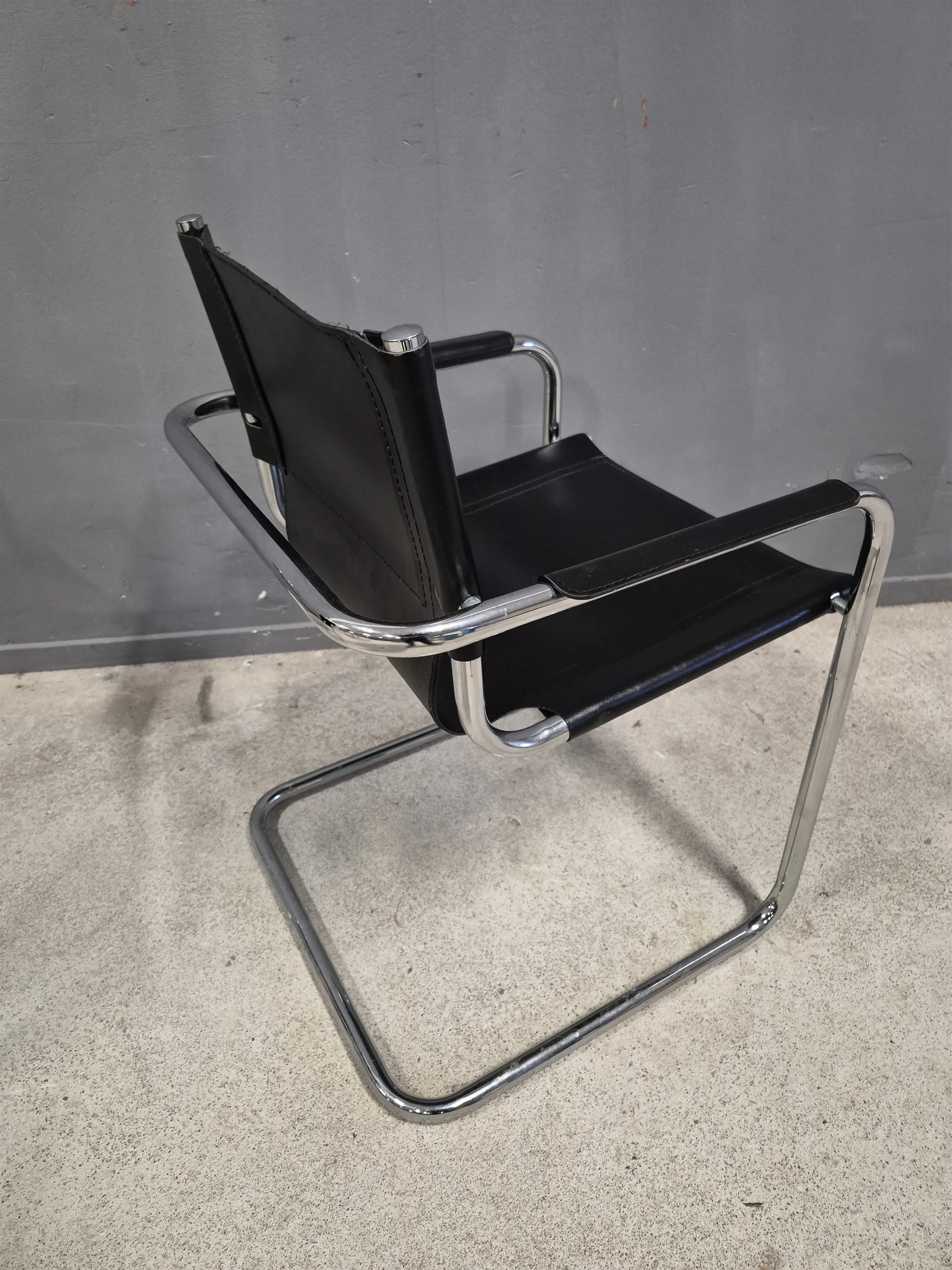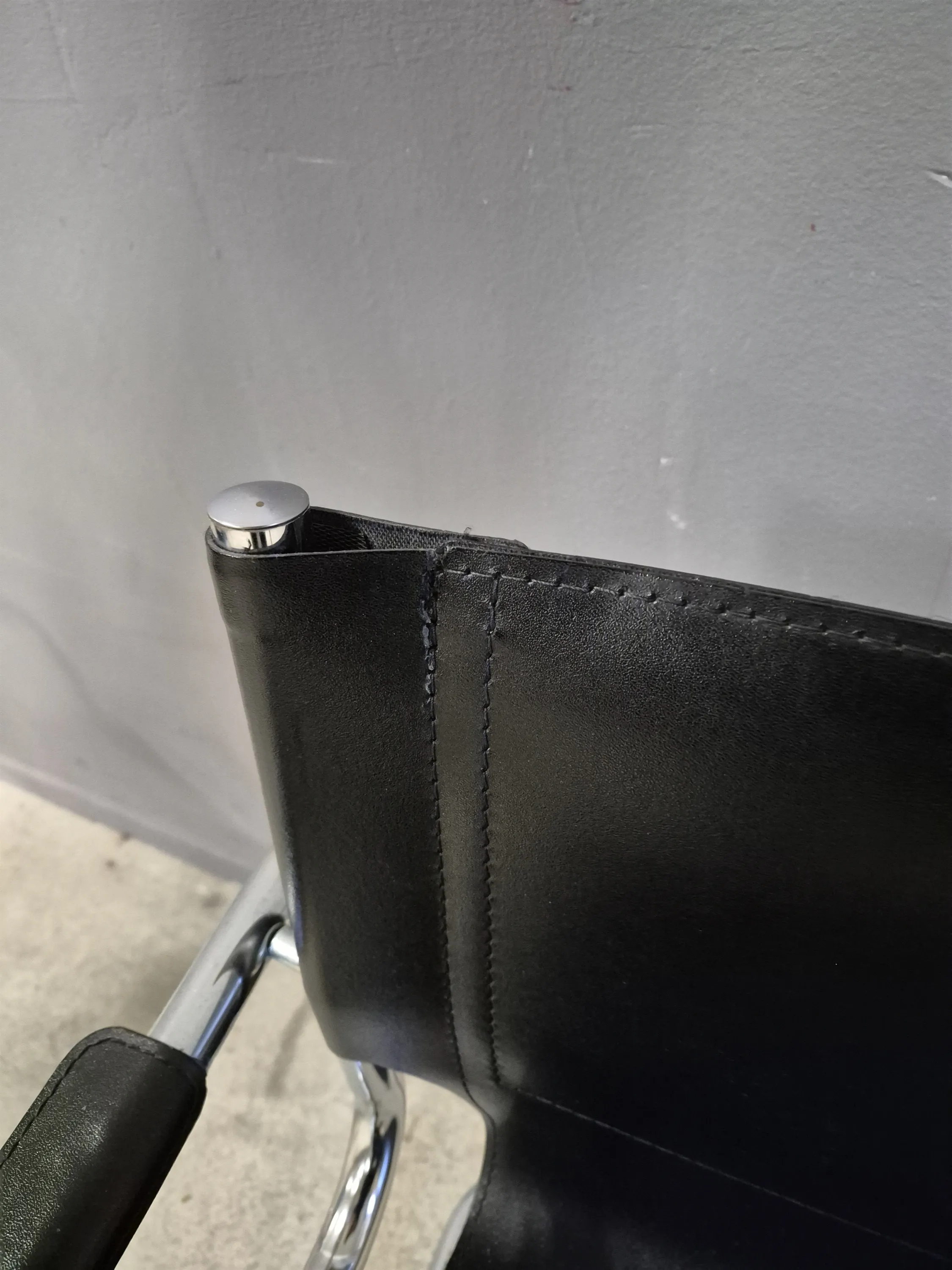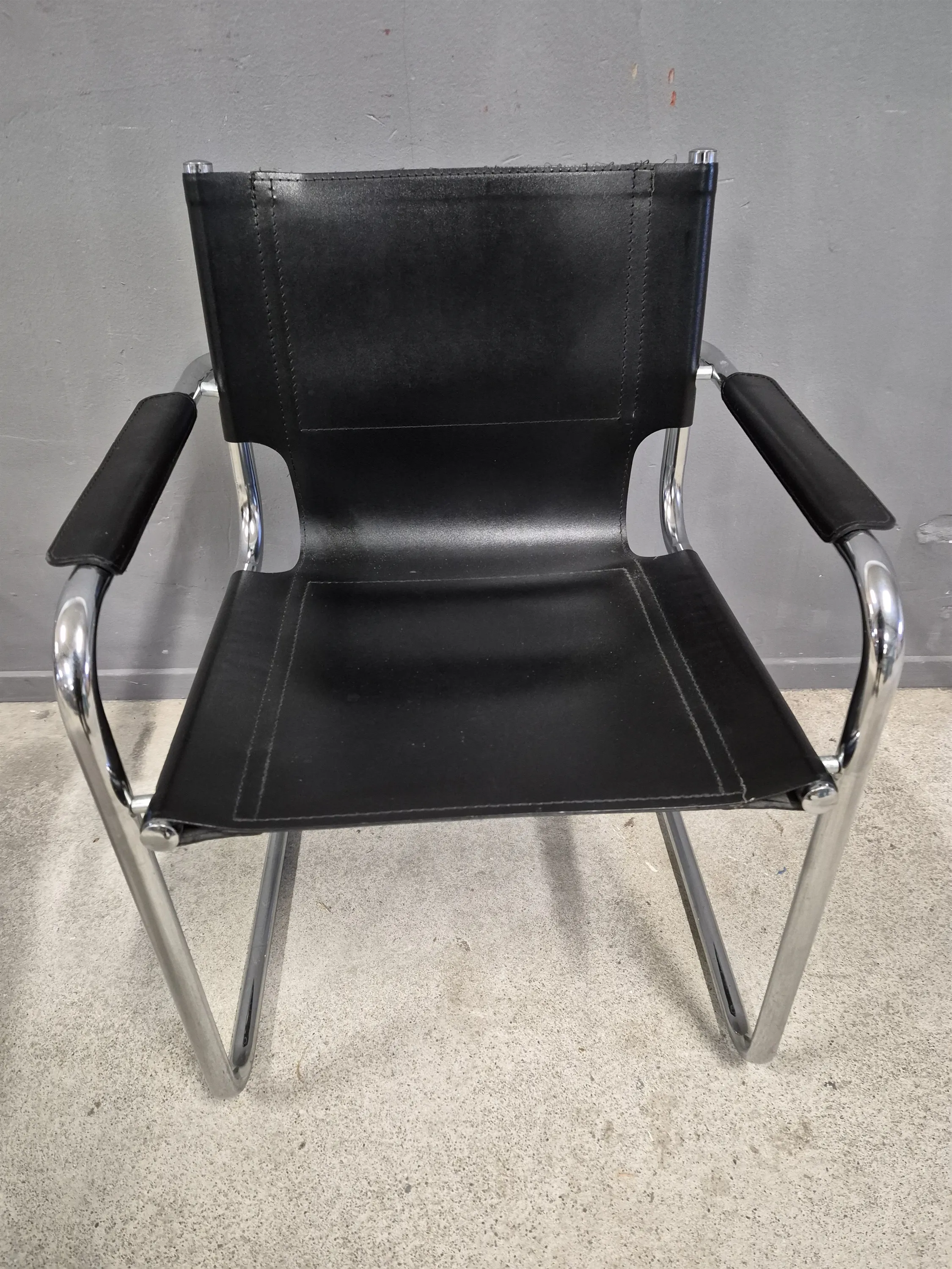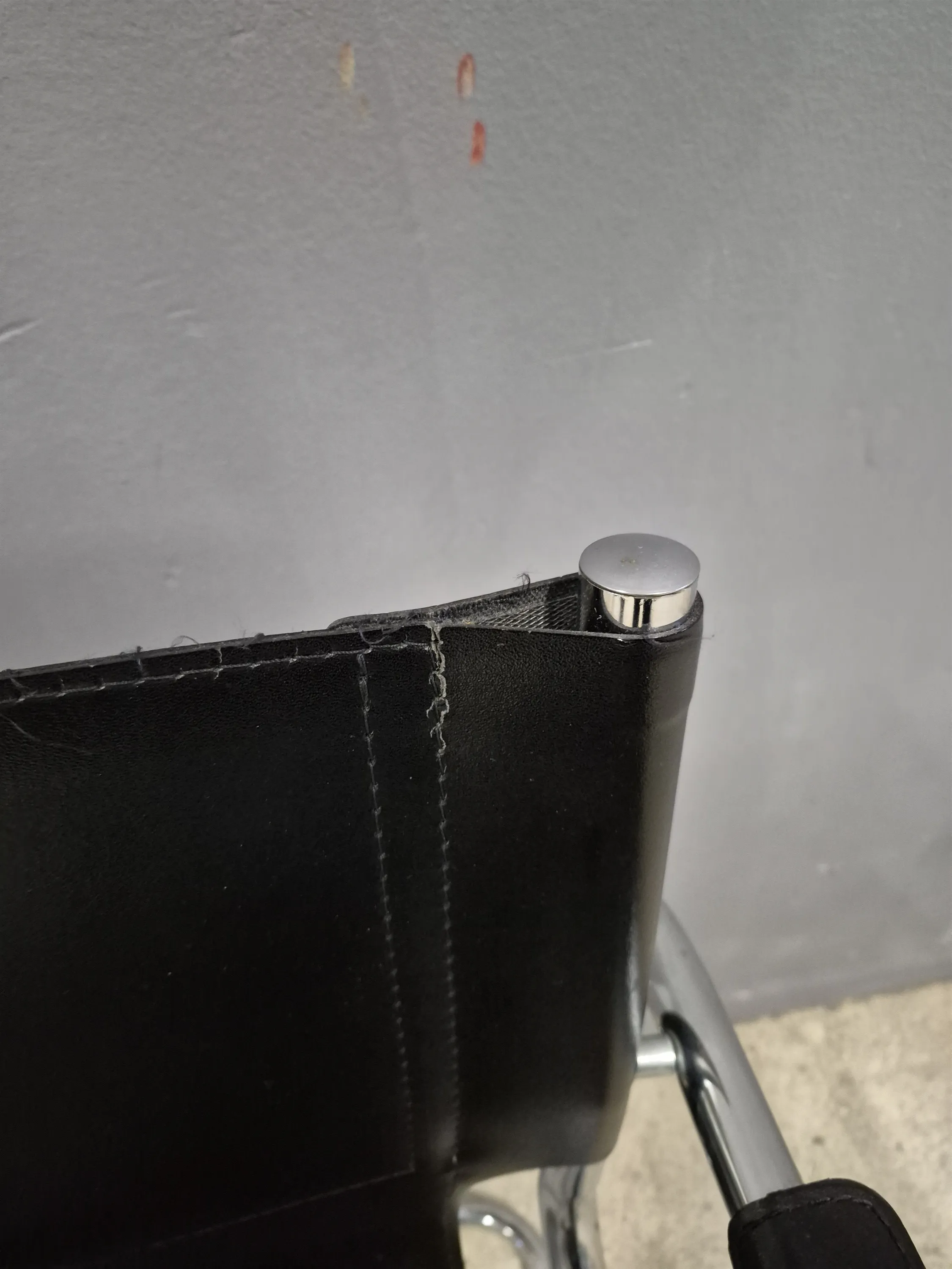 18878. Karmstol med läder och stålrörsram, höjd 81 cm