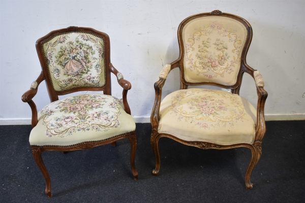 11428. Karmstolar 2 st fransk rokokostil, högsta 90 cm
