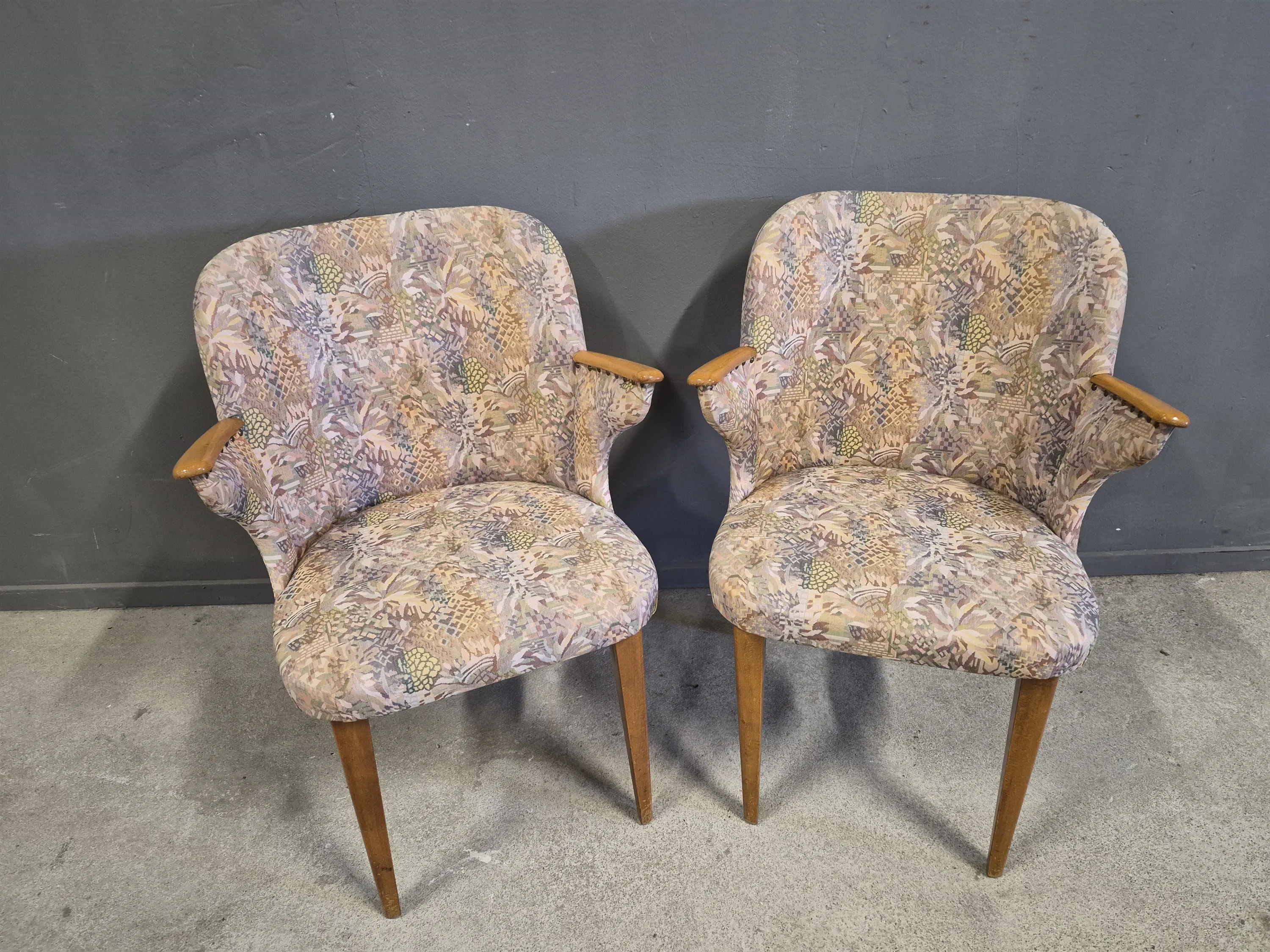 21073. Karmstolar 2 st, kretongklädda, höjd 80 cm