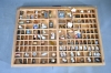 6425. Kasthylla med samlarföremål, mått 58 x 42 cm