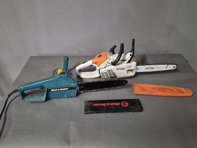 18159. Kedjesåg elektriskt längd svärd 32 cm, fungerar & motorsåg bensin fungerar ej
