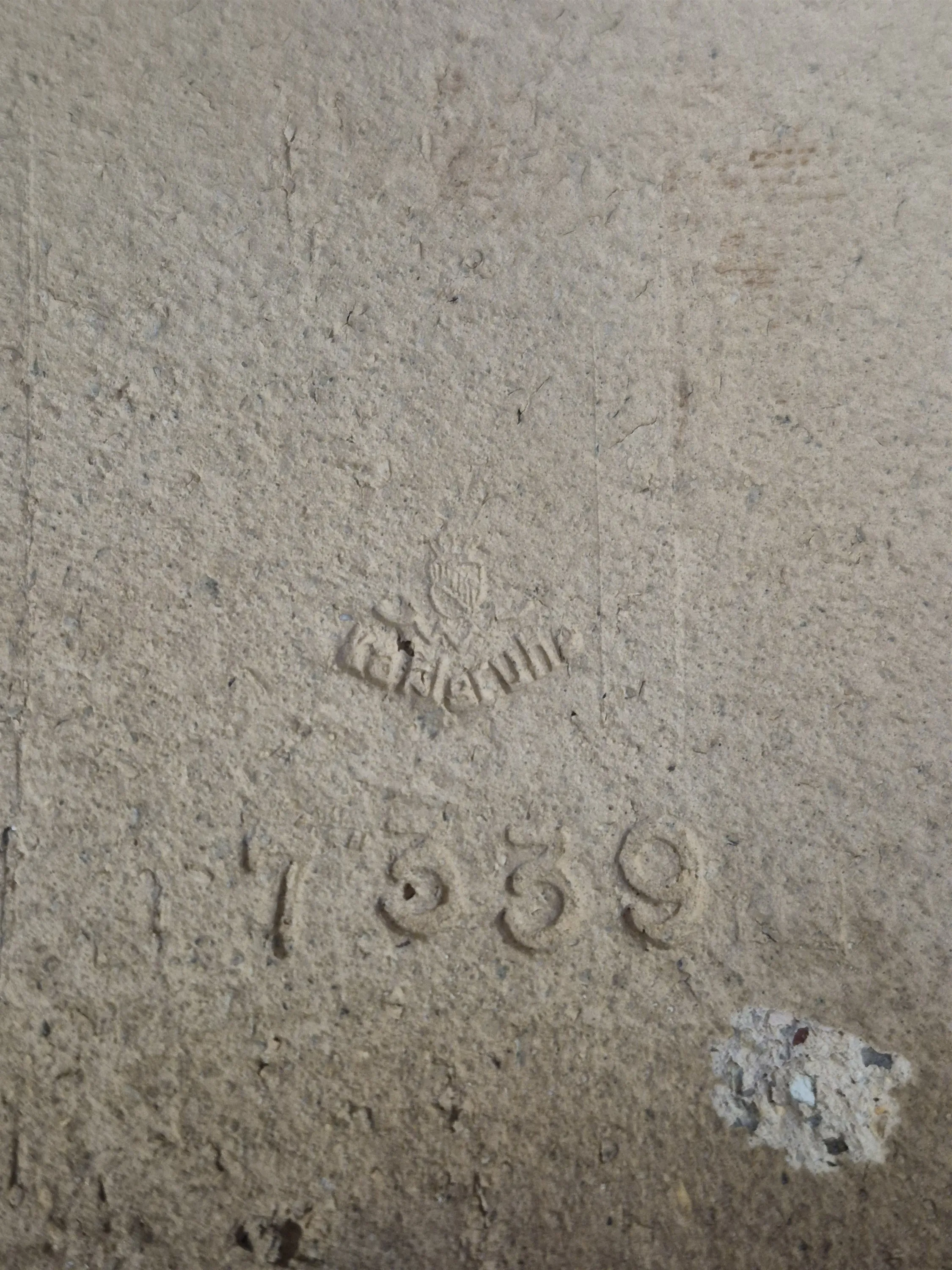 18632. Keramiktavla Karlsruher majolika, liljor, mått 41x28,5 cm