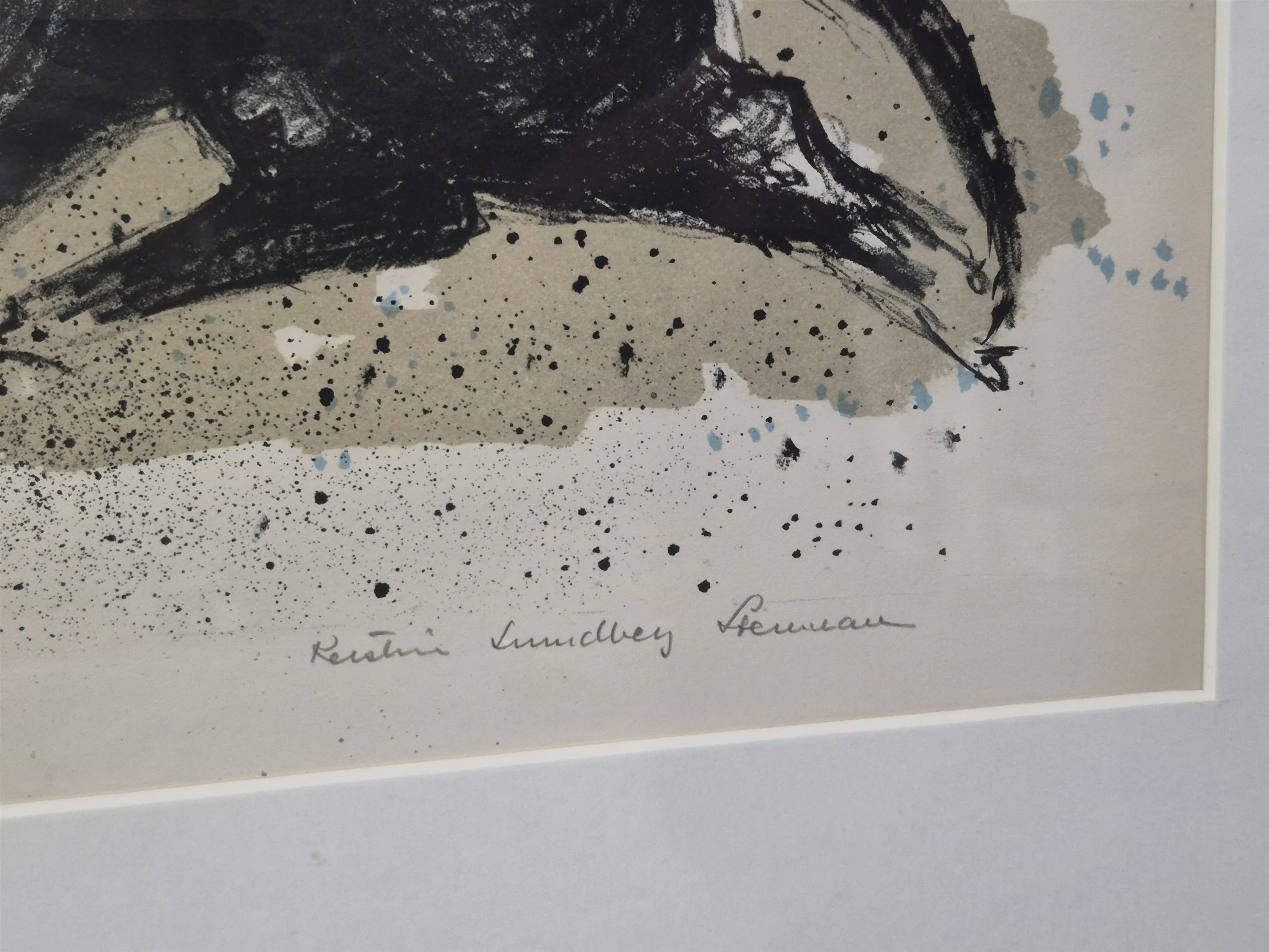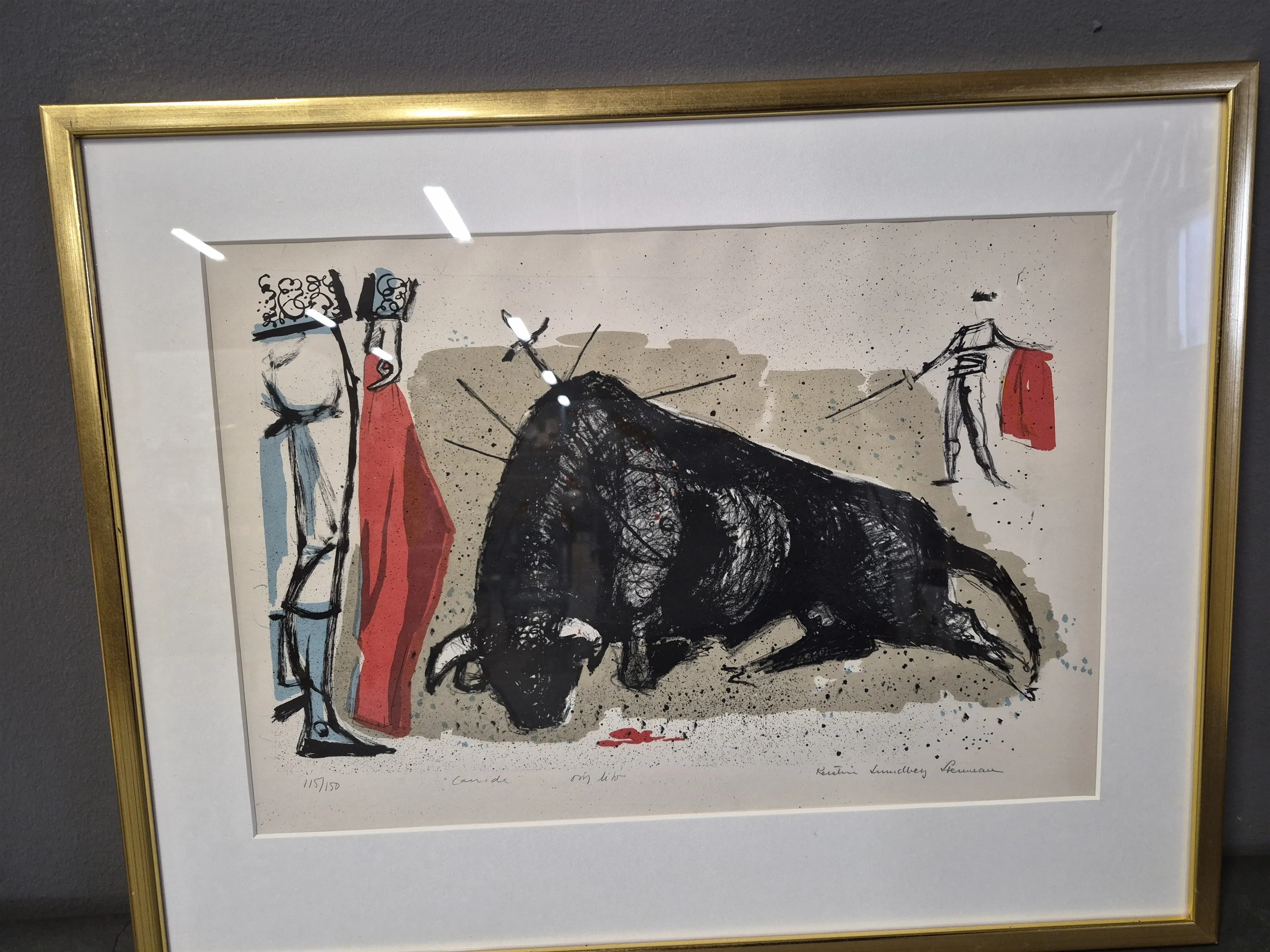18689. Kerstin Lundberg-Stenman litografi "tjurfäktning", yttermått 57x46 cm