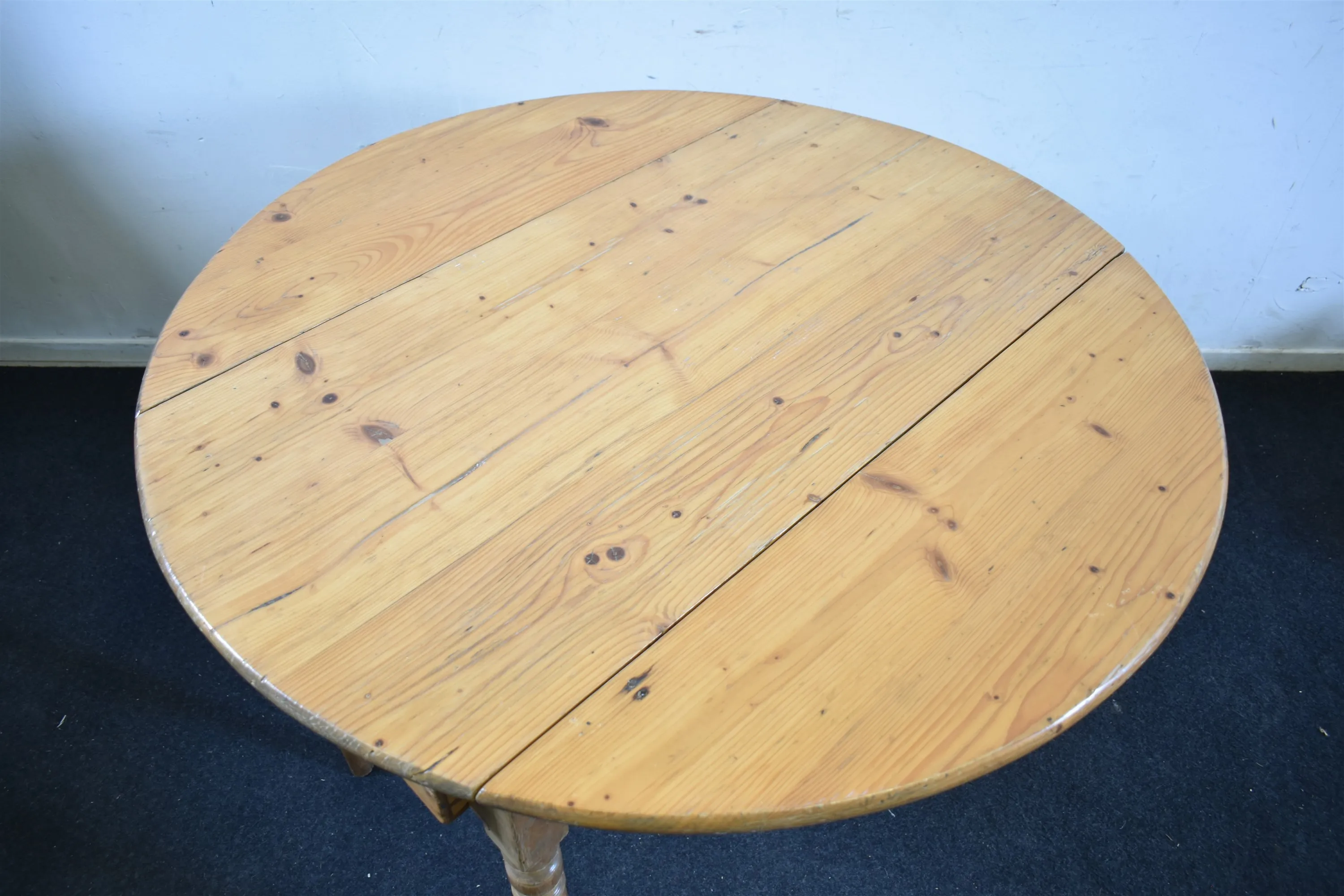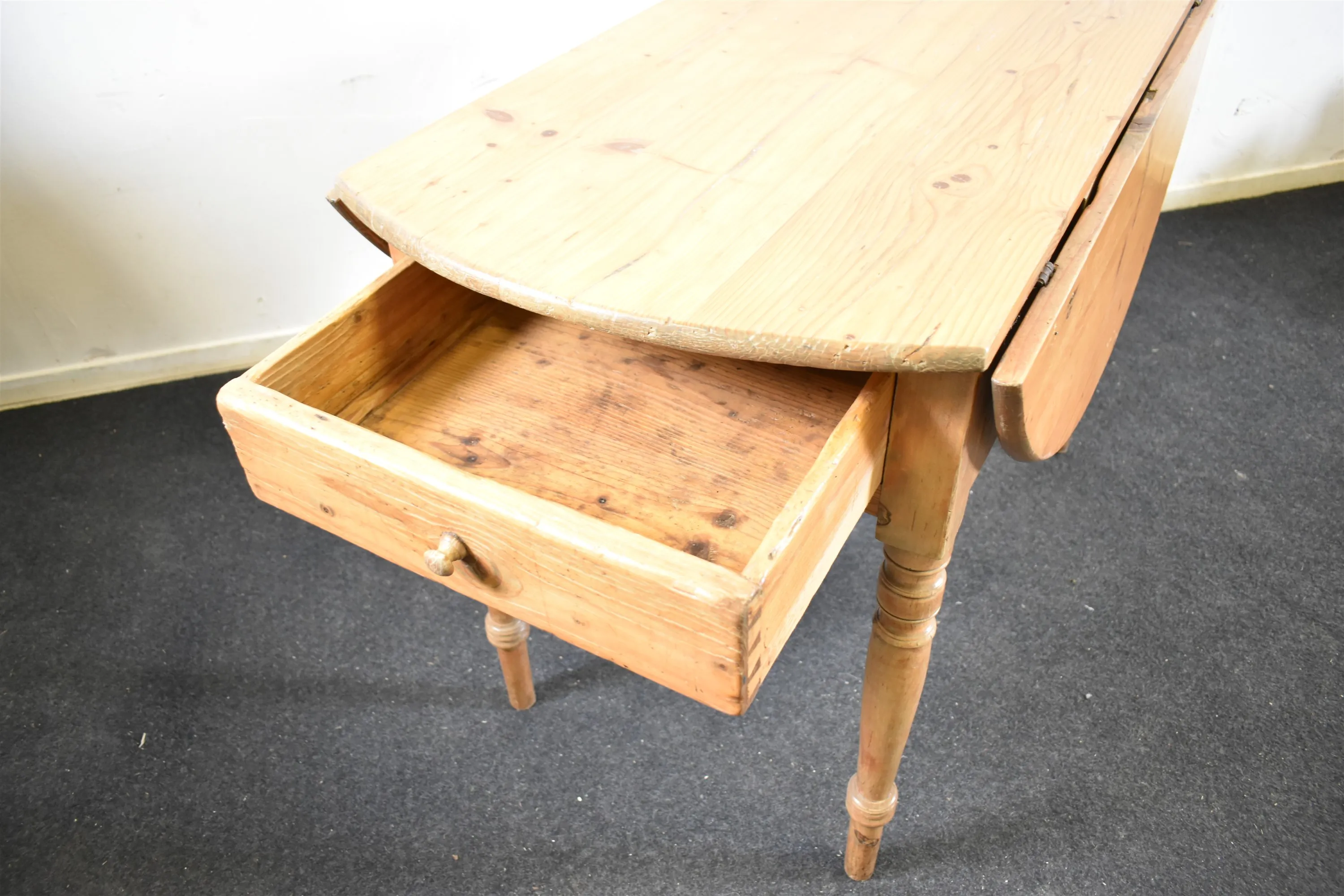 9209. Klaffbord med låda, slutet på 1800 talet, furu, höjd 78 cm, längd/diameter 113 cm