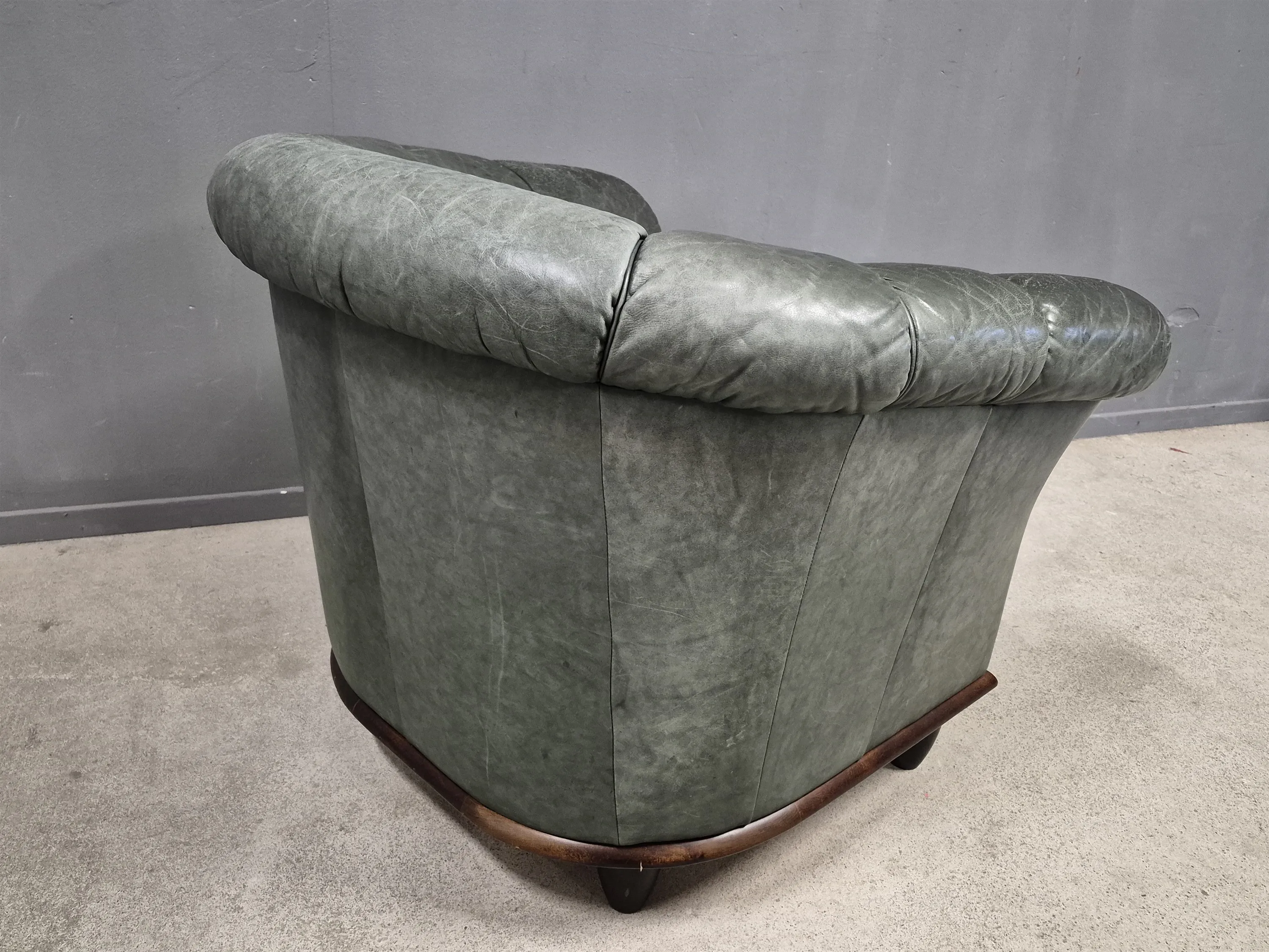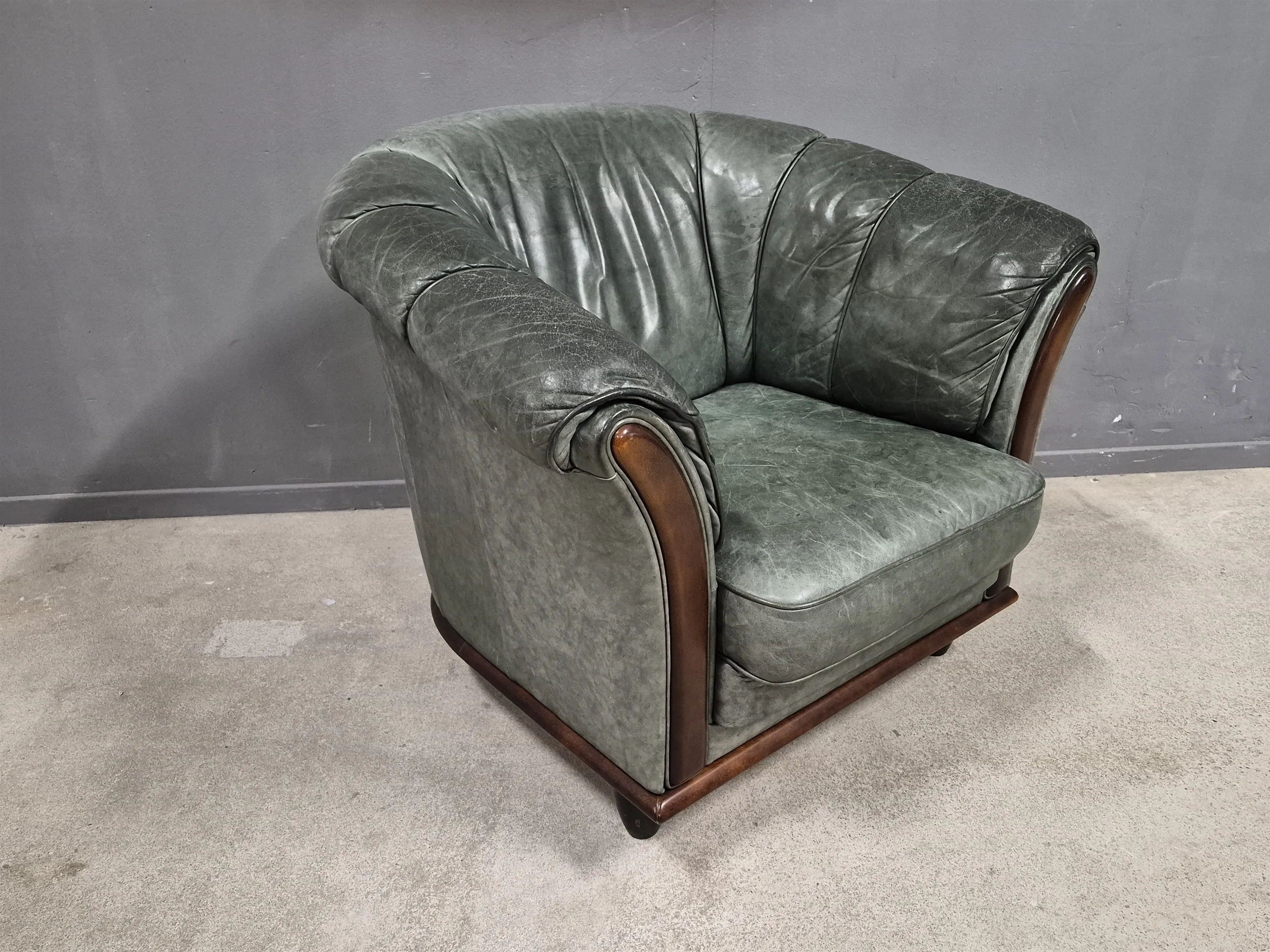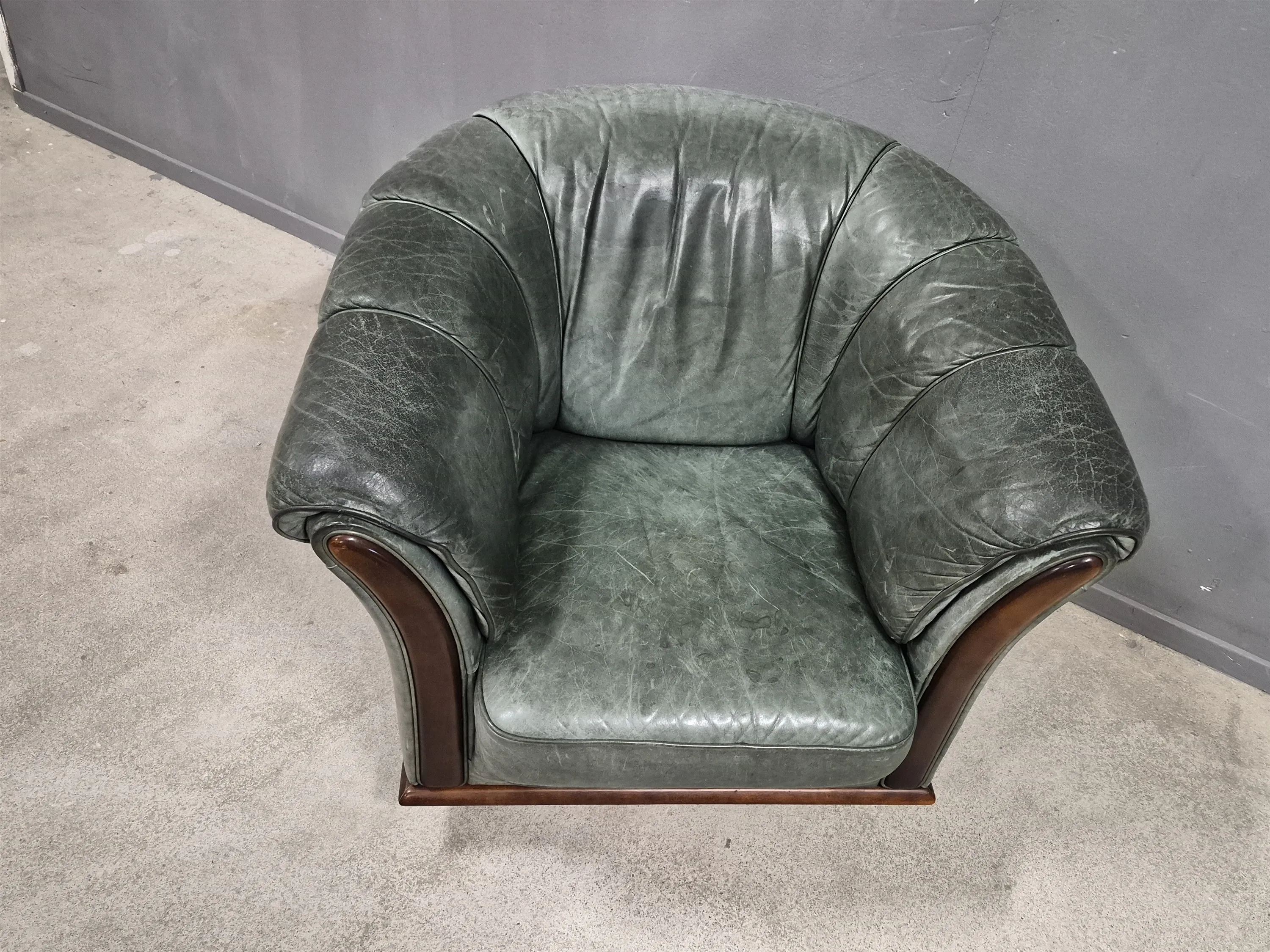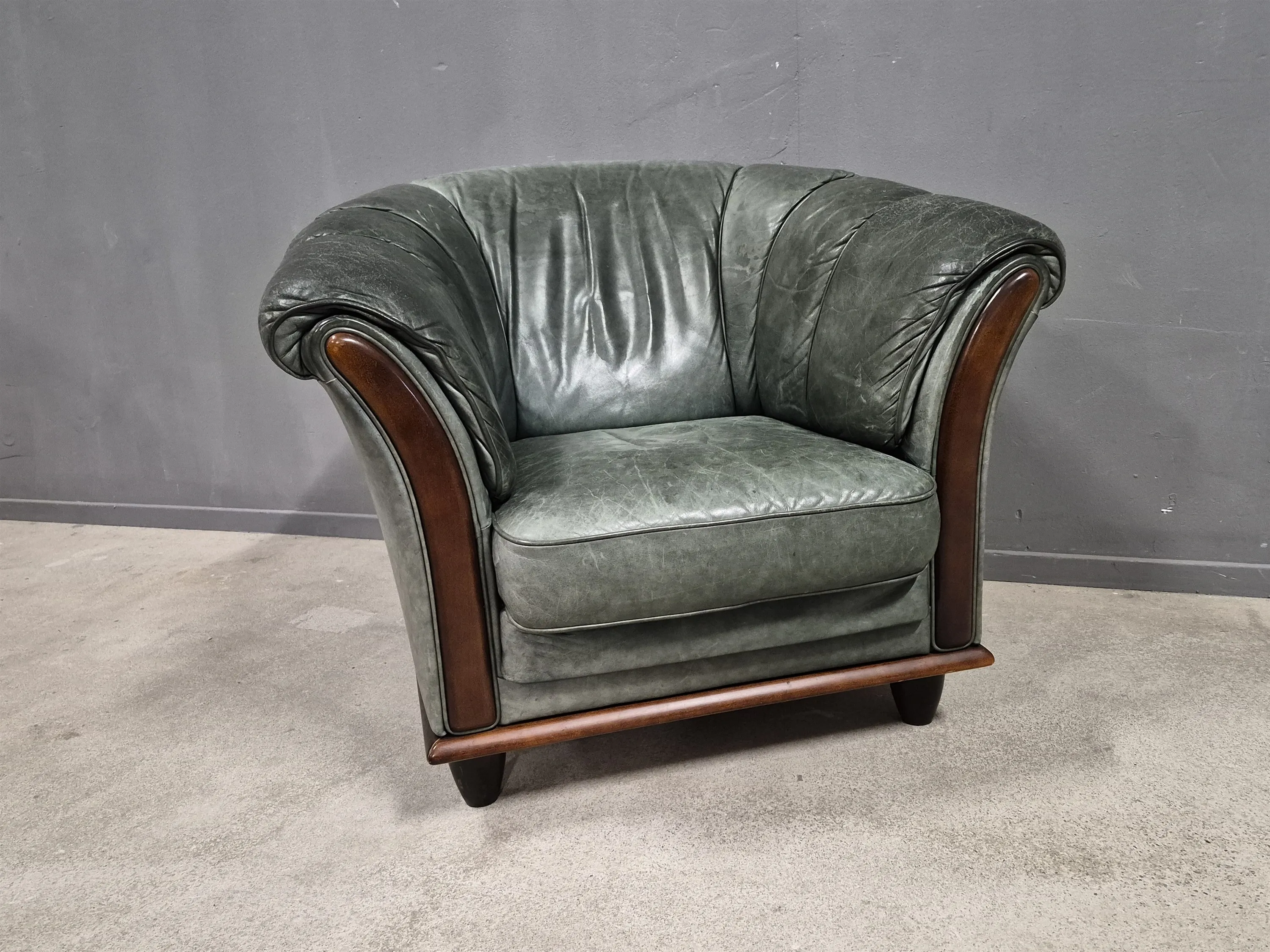 20808. Klubbfåtölj skinn med trädetaljer, höjd 80 cm