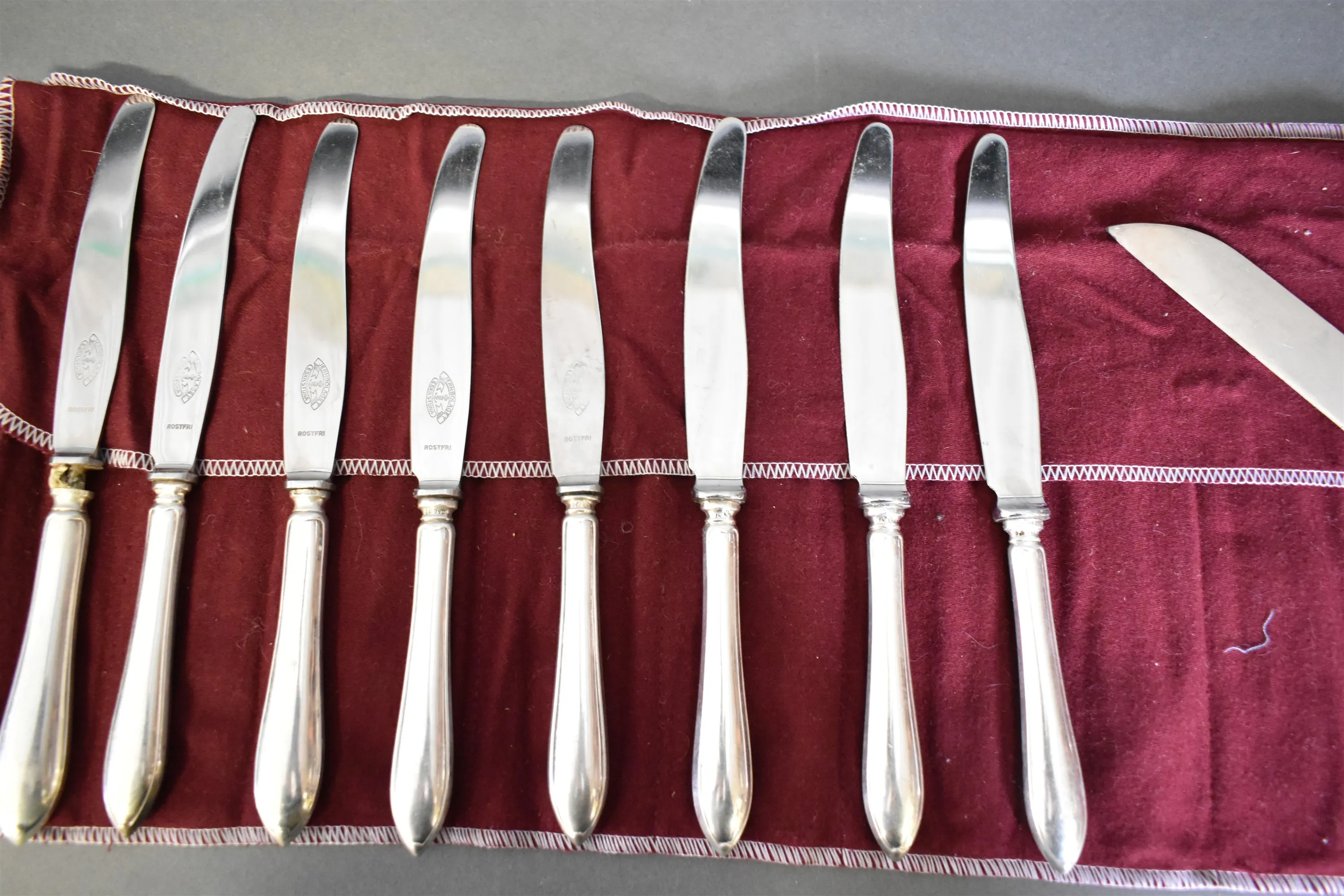 7087. Knivar 9 st silver bla Eskilstuna, längsta mått 23 cm, totalvikt ca 465 g