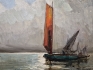 19398. Knut Norman olja på duk, "Segelbåt", mått 60 x 51 cm