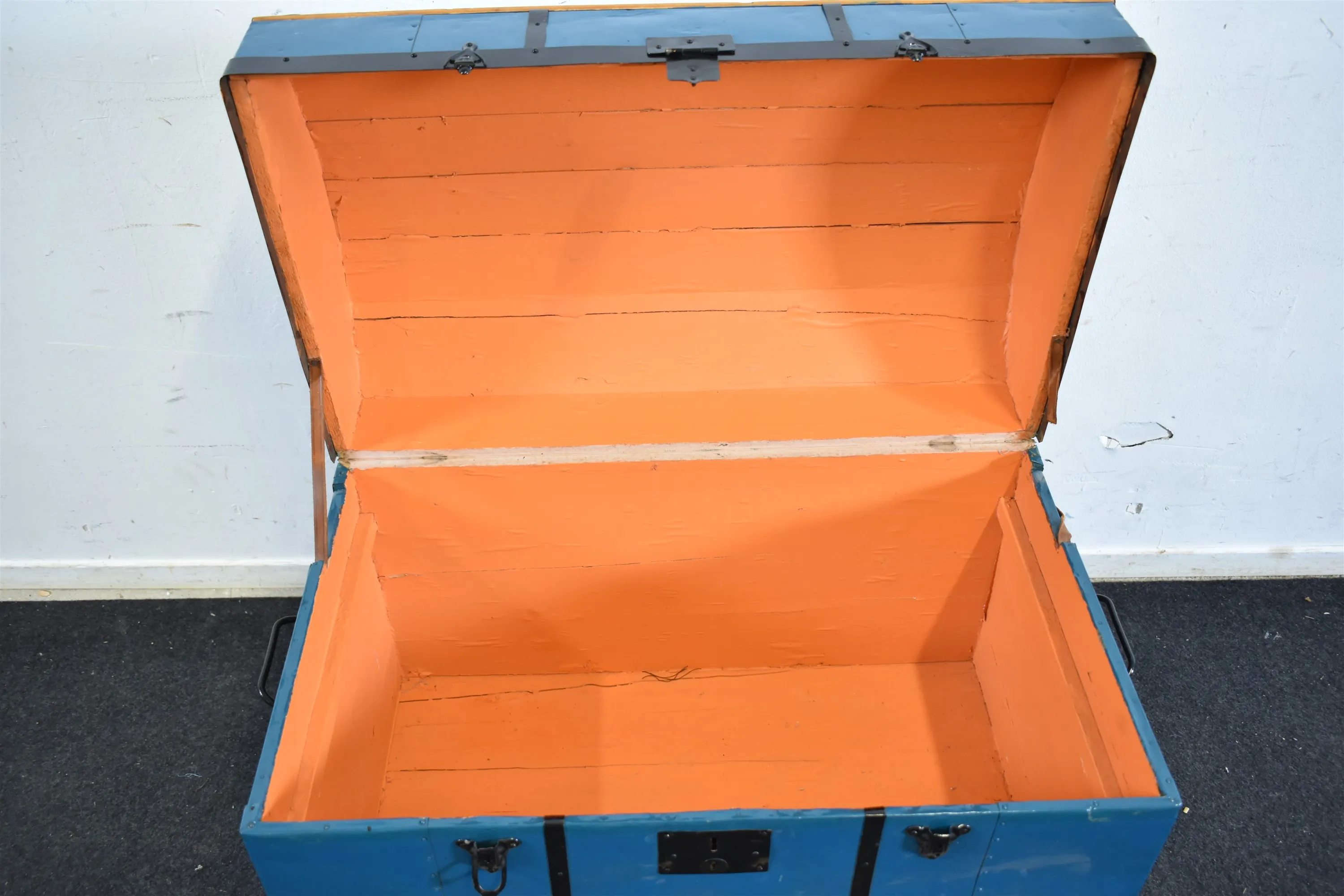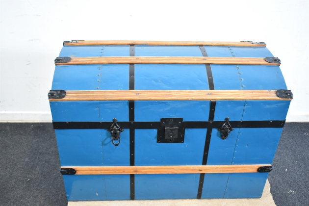 15120. Koffert blåmålad, längd 75 cm, bredd 44 cm, höjd 54 cm