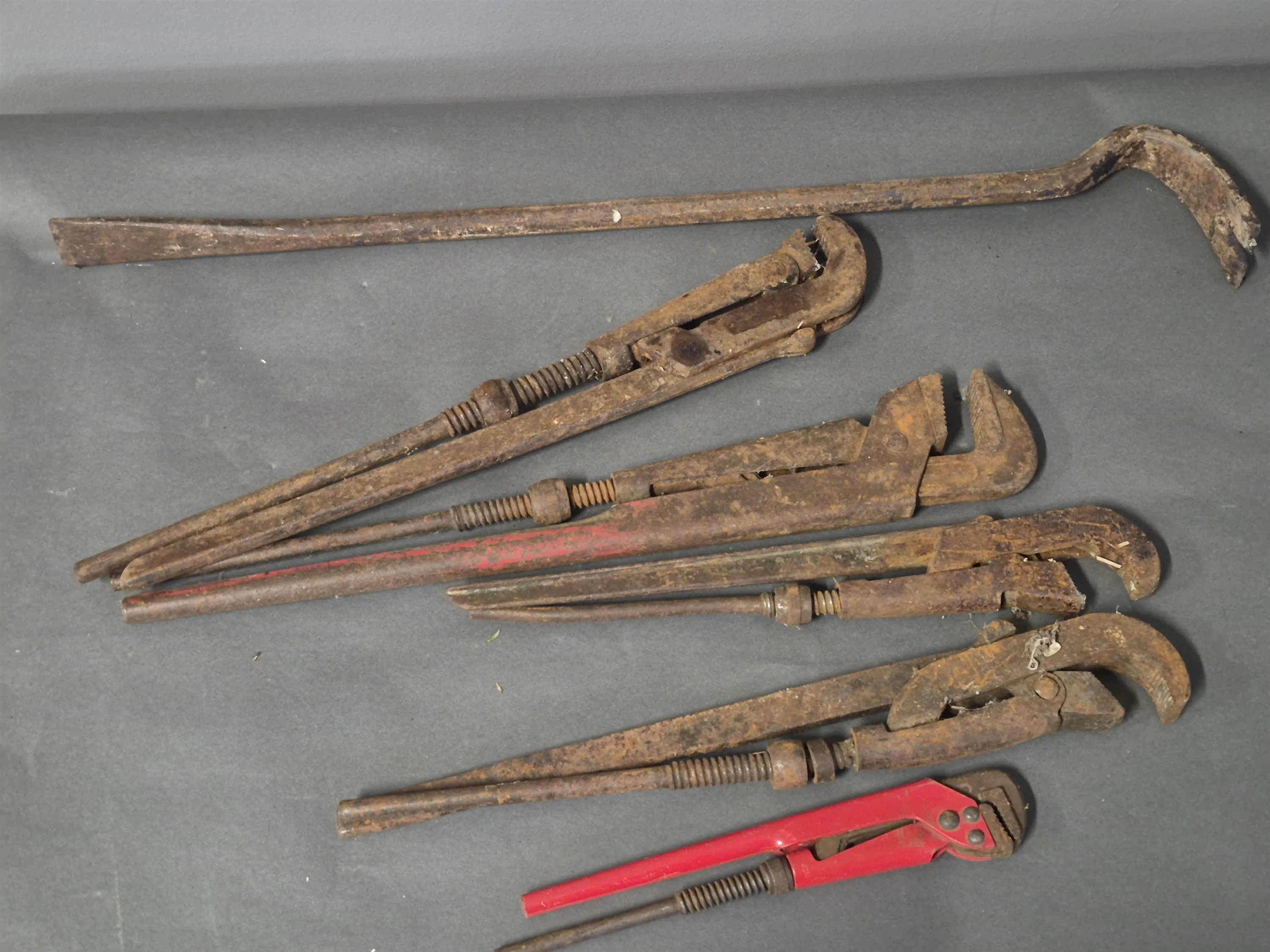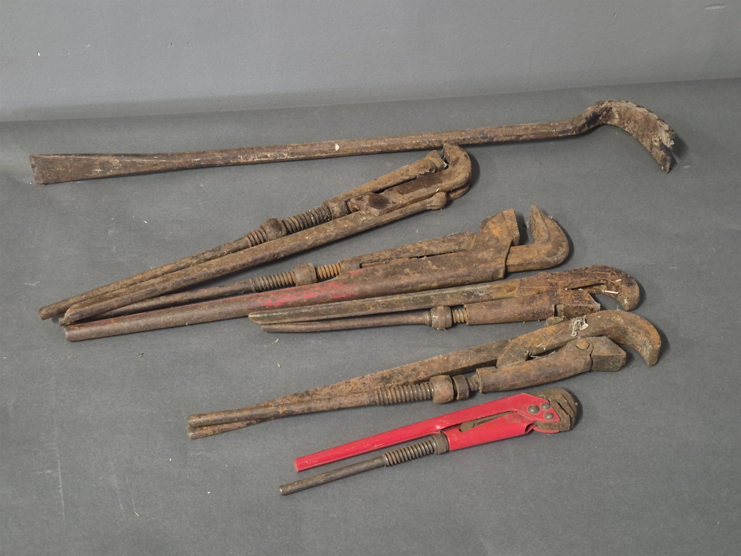 18095. Kofot & rörtänger 5 st, längsta 76 cm, rost finns