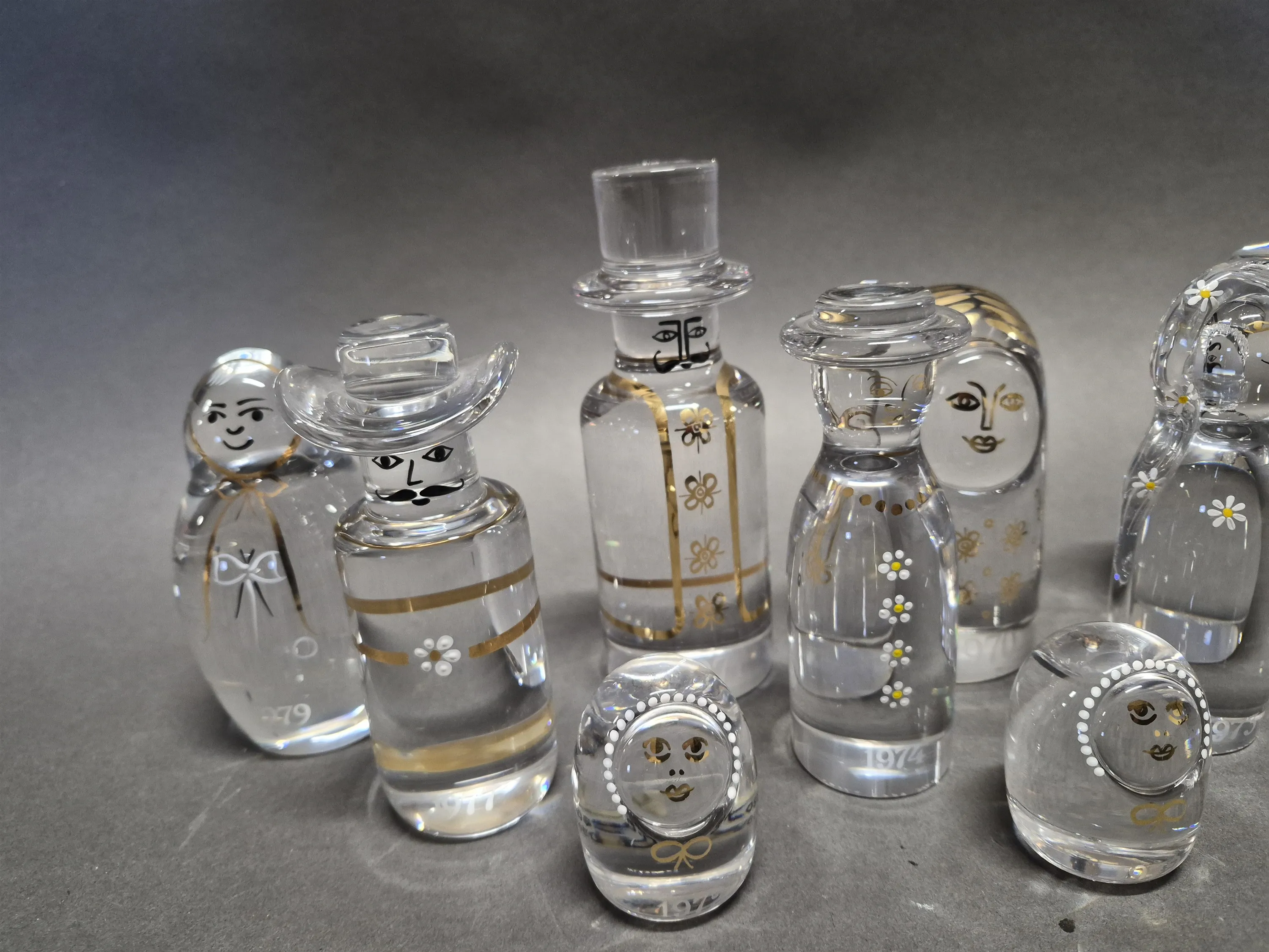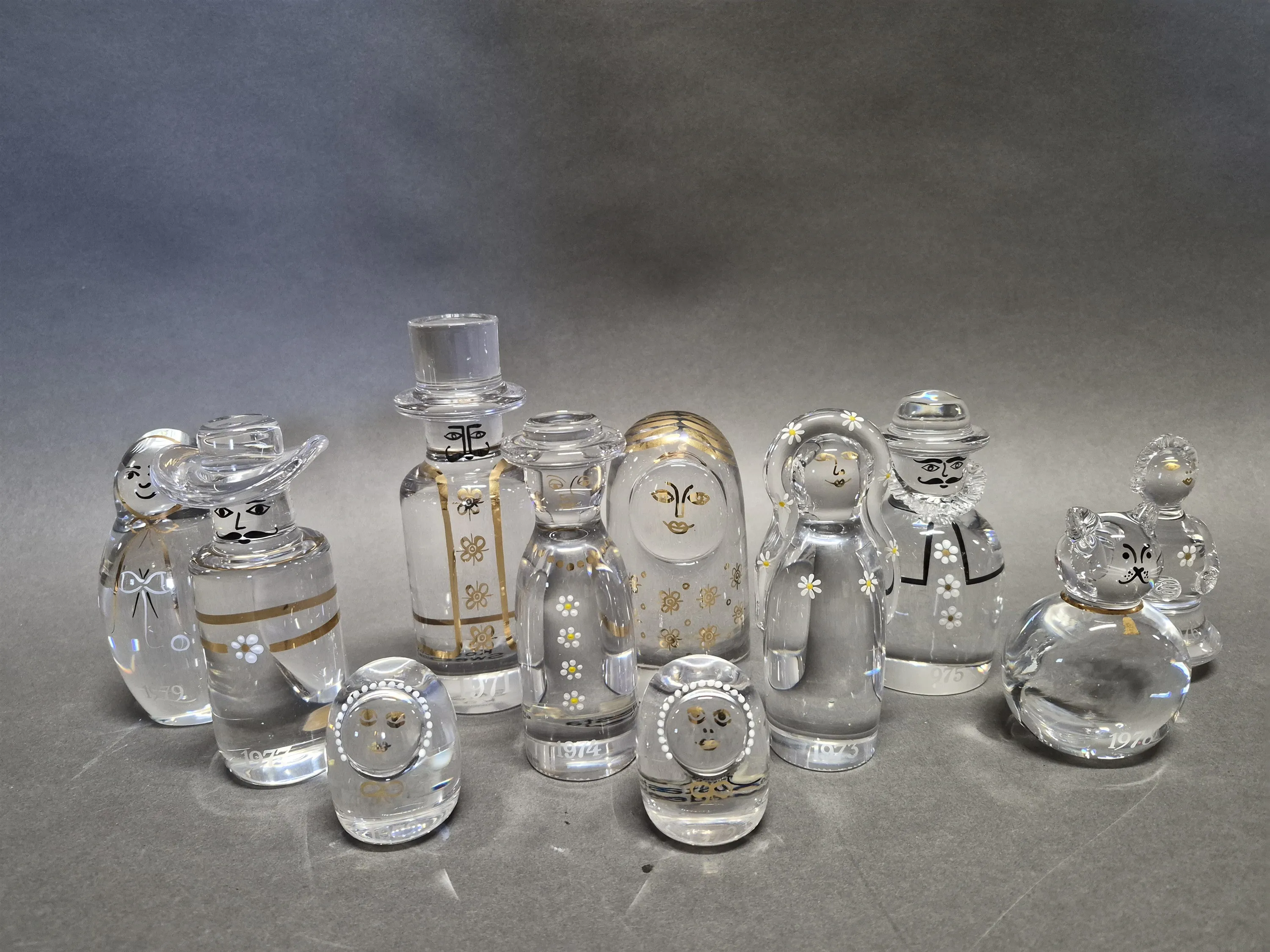 18756. Konstglas 11 st Göran Wärff "Familjen" Kosta Boda, högsta höjd 16 cm