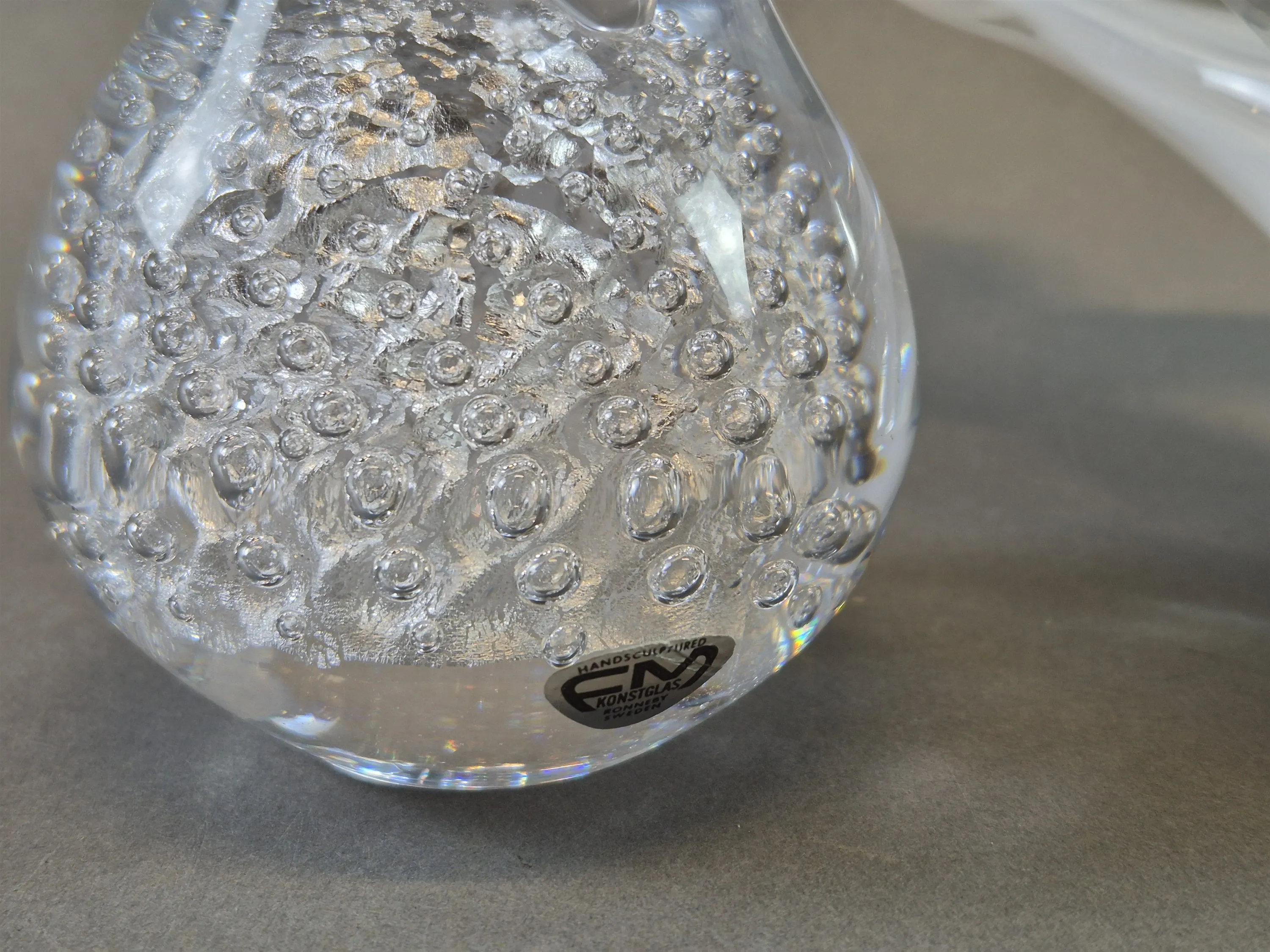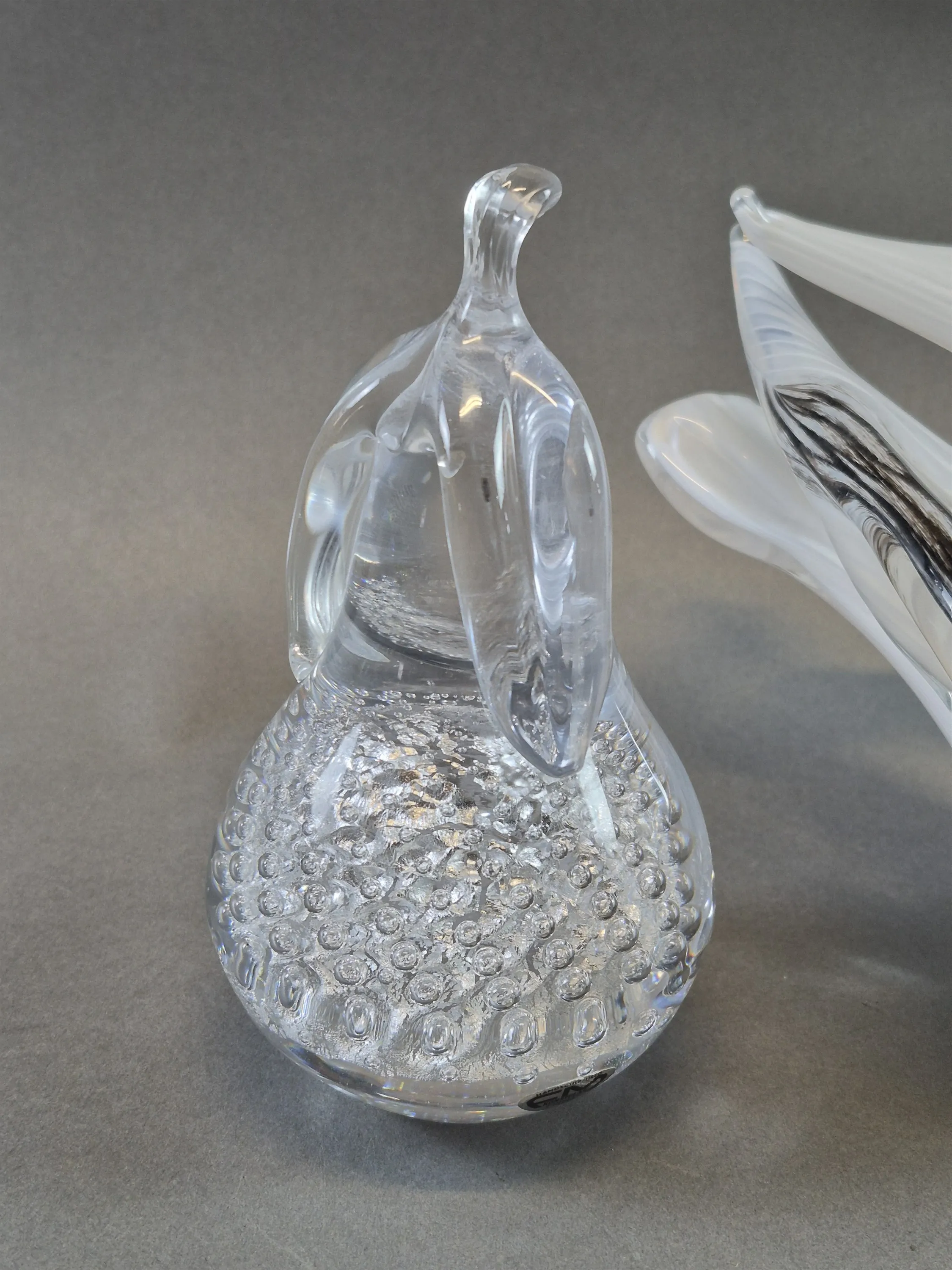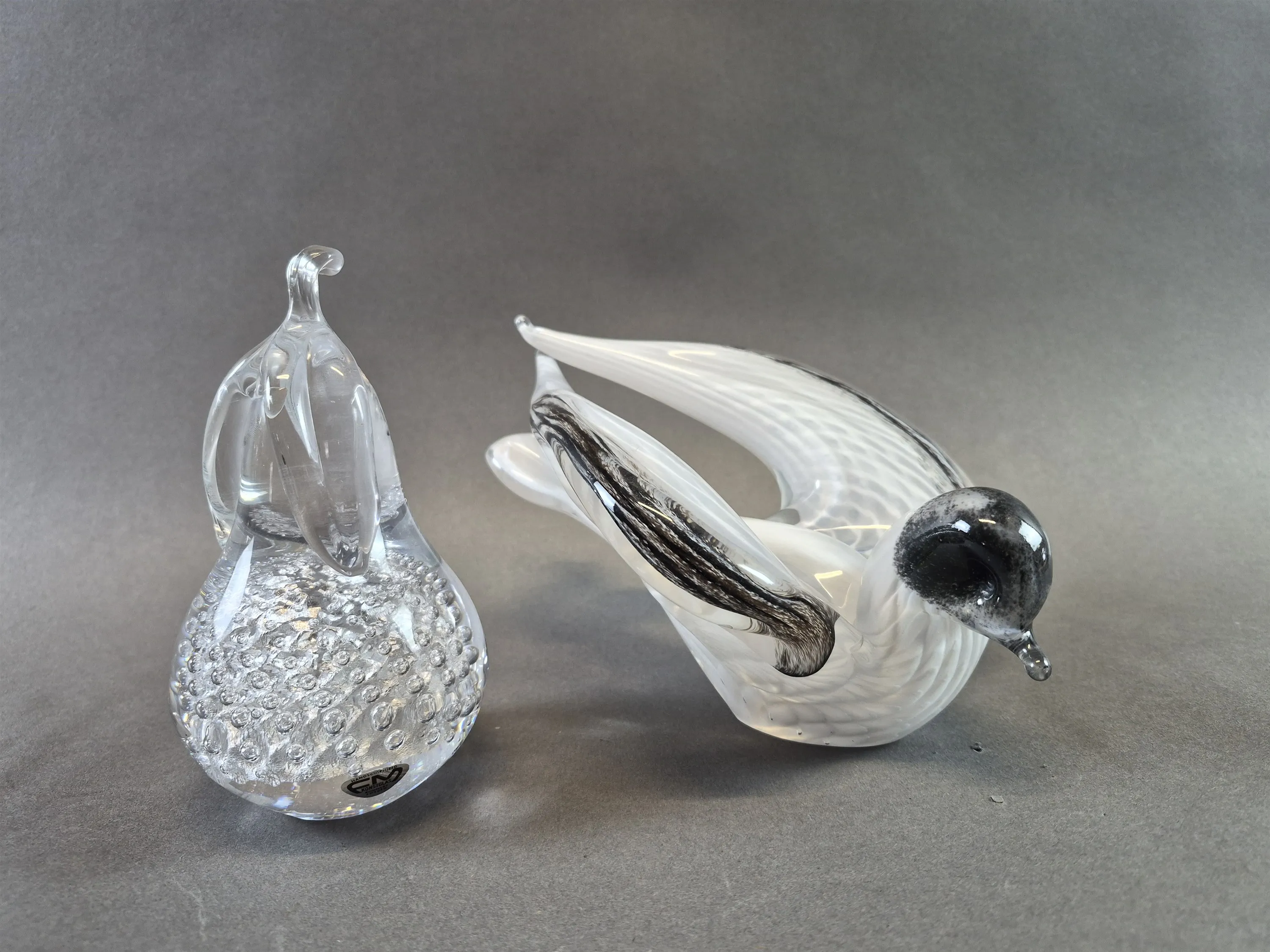 20385. Konstglas 2 st FM; frukt och fågel, högsta höjd 15 cm