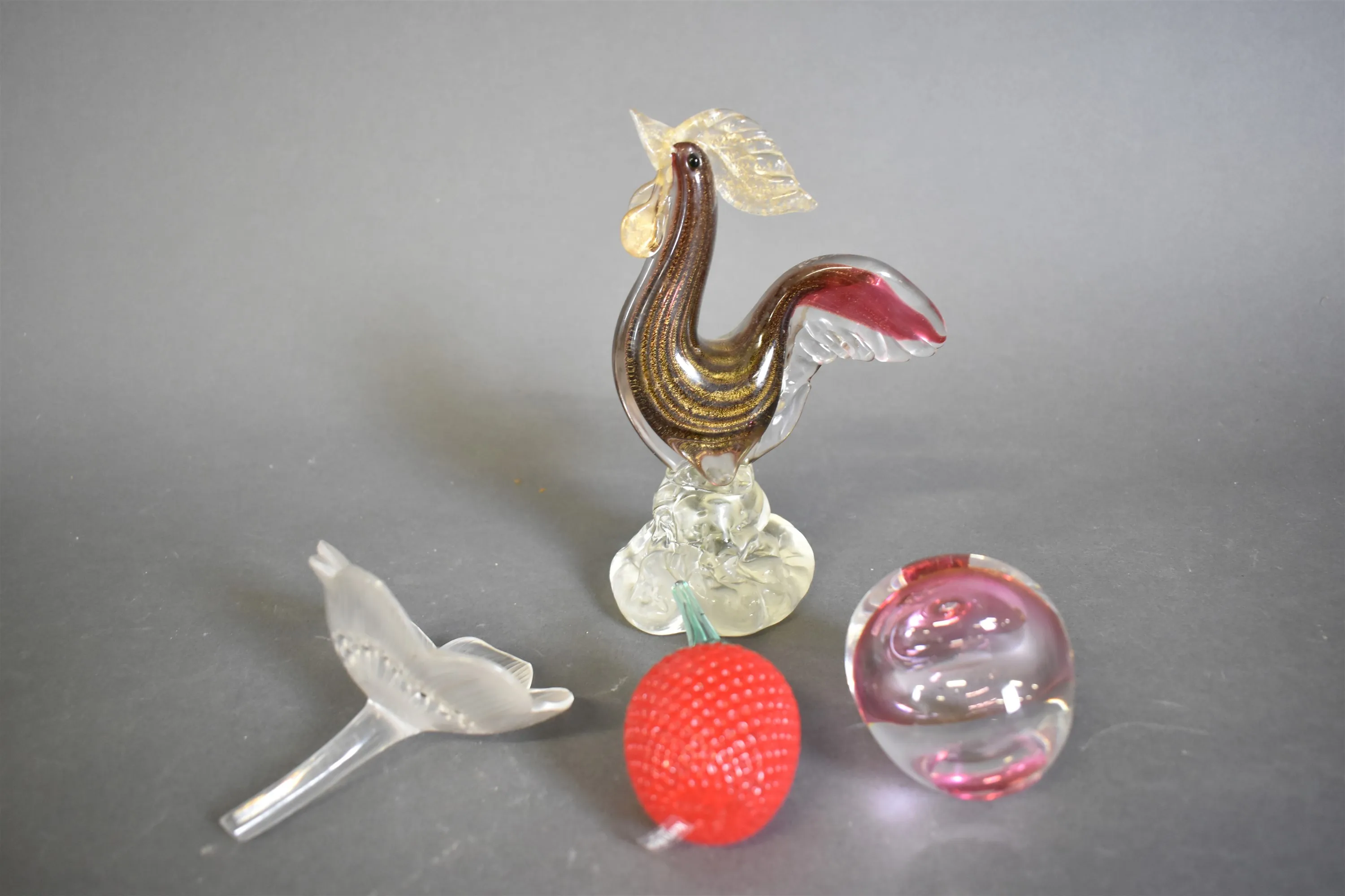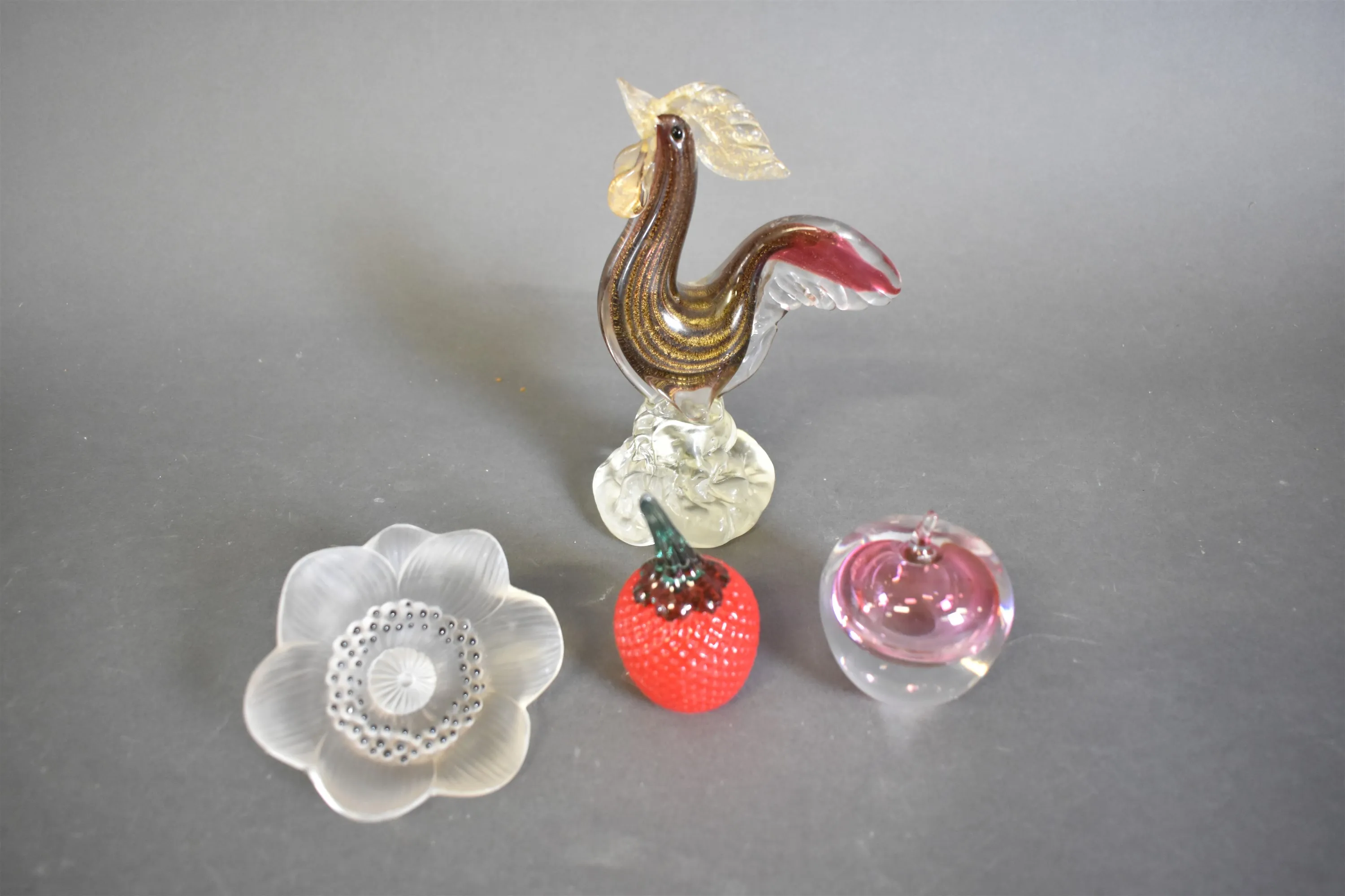 12125. Konstglas 4 del bl.a tupp, frukt Kosta Boda & äpple Studio Åhus högsta 20 cm