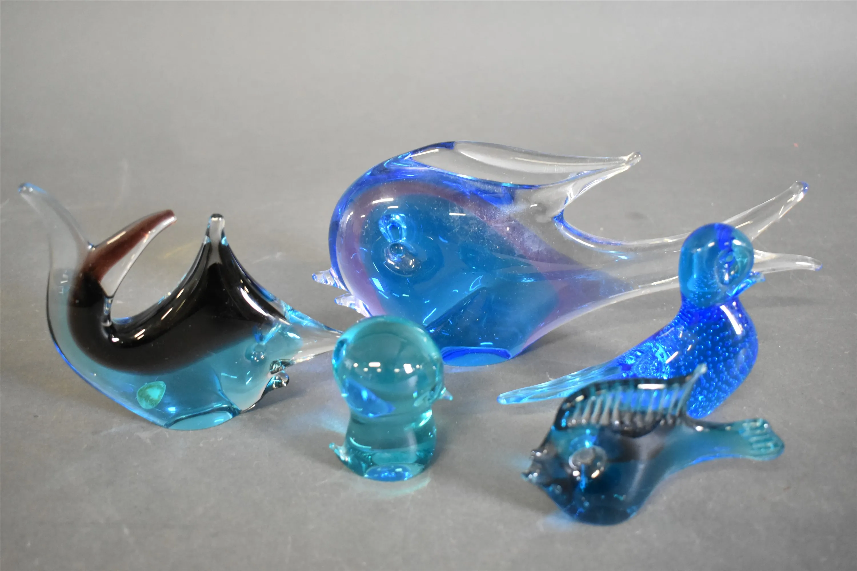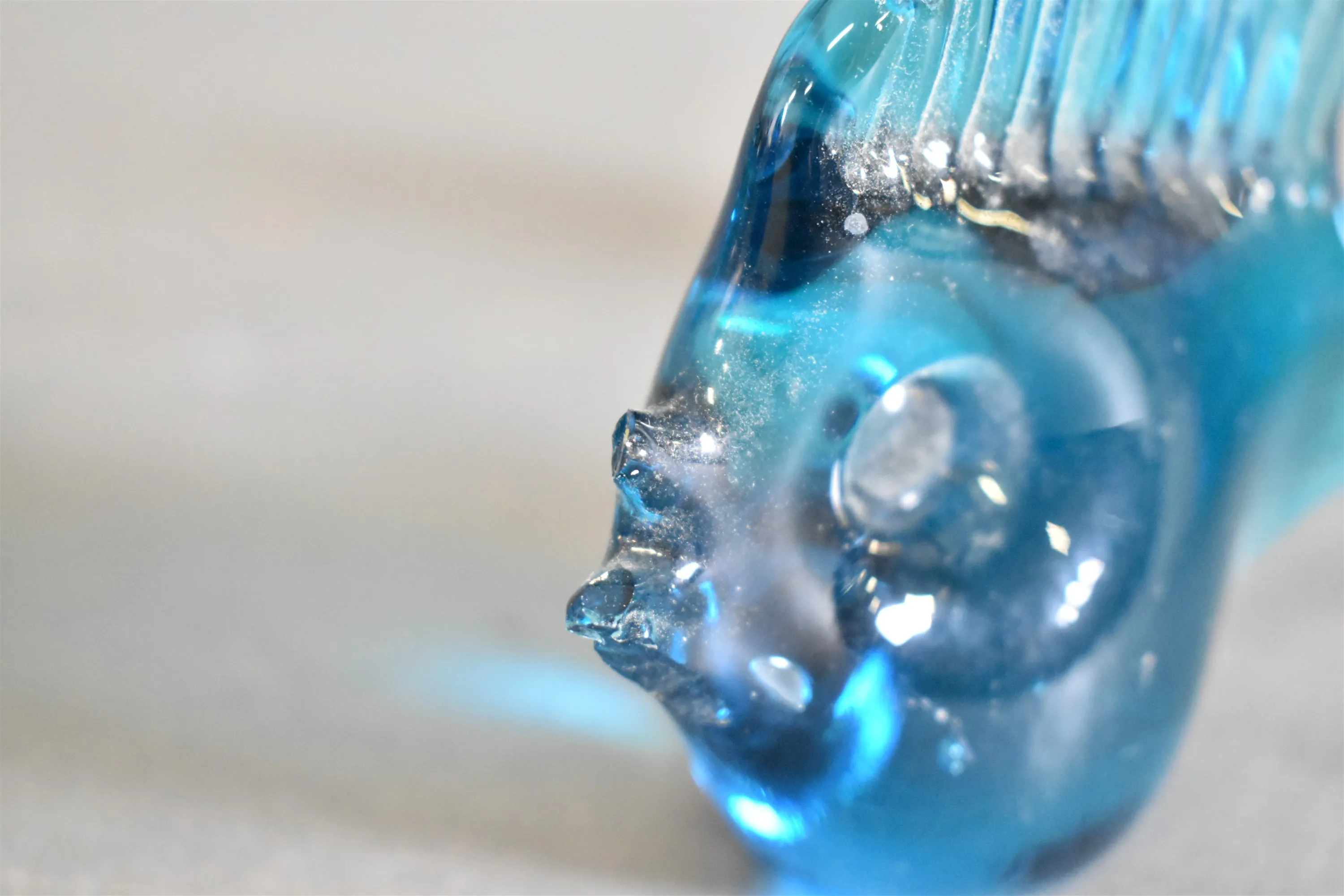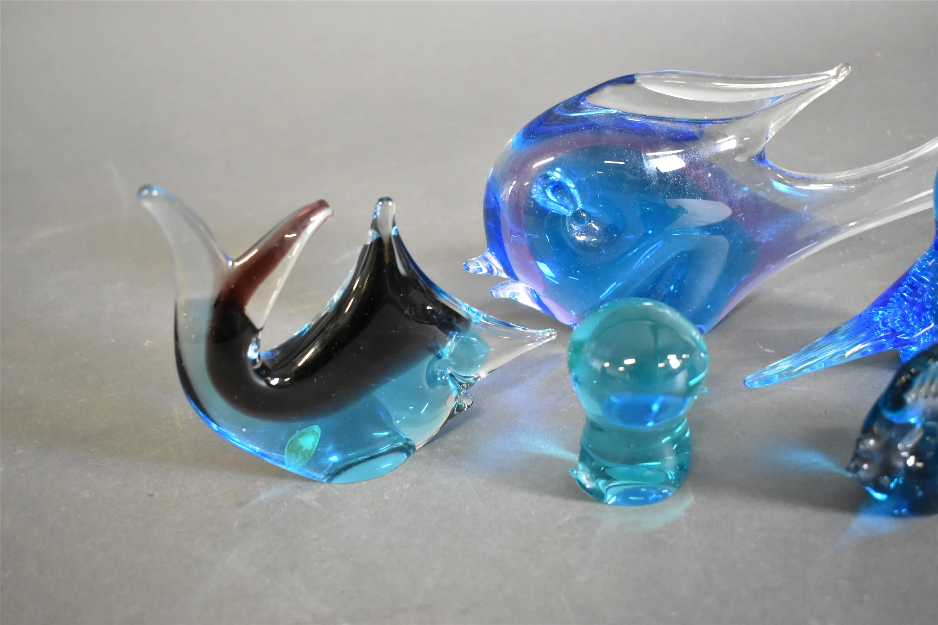 16510. Konstglas blåtonat glas, litet nagg på fisk, längsta mått 28 cm