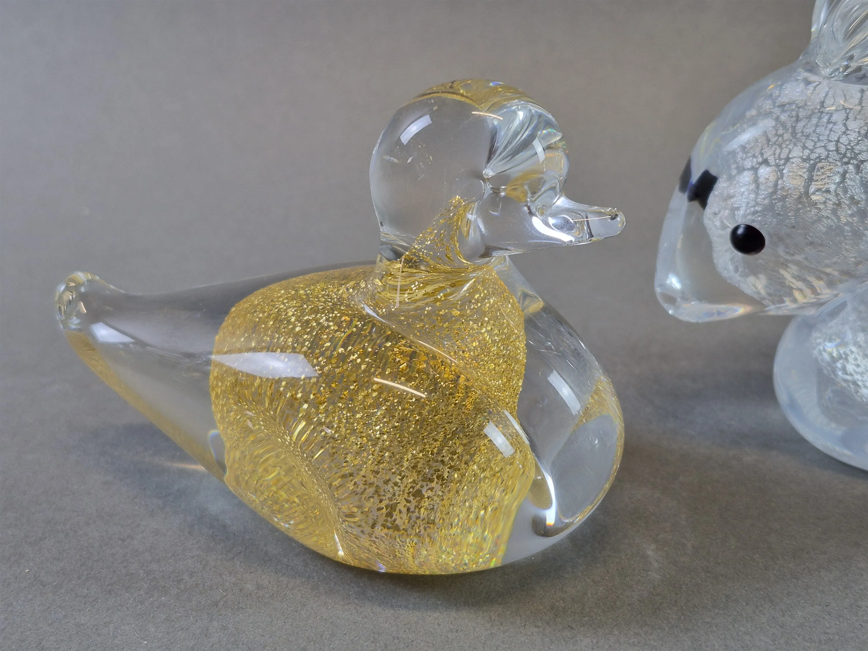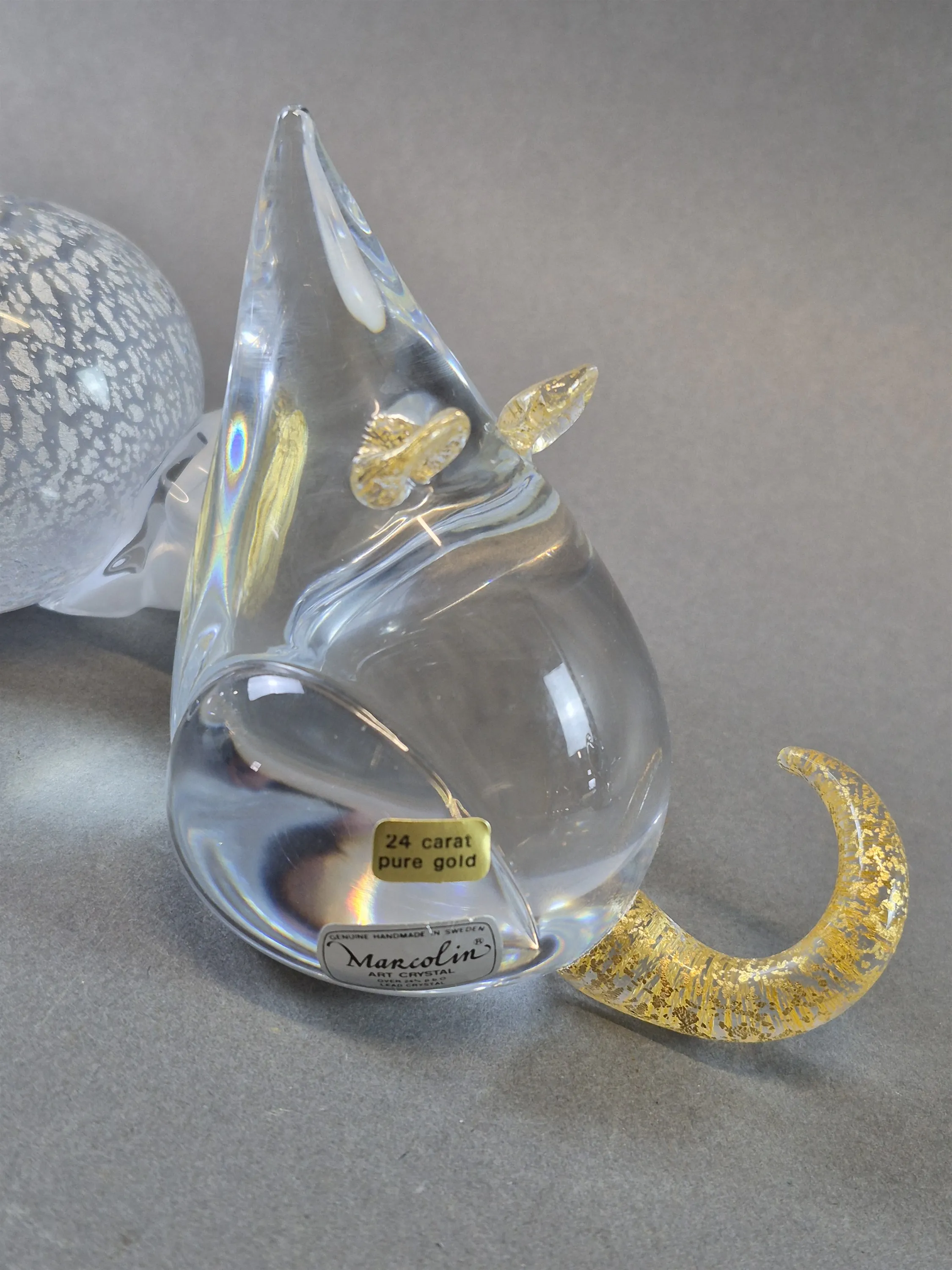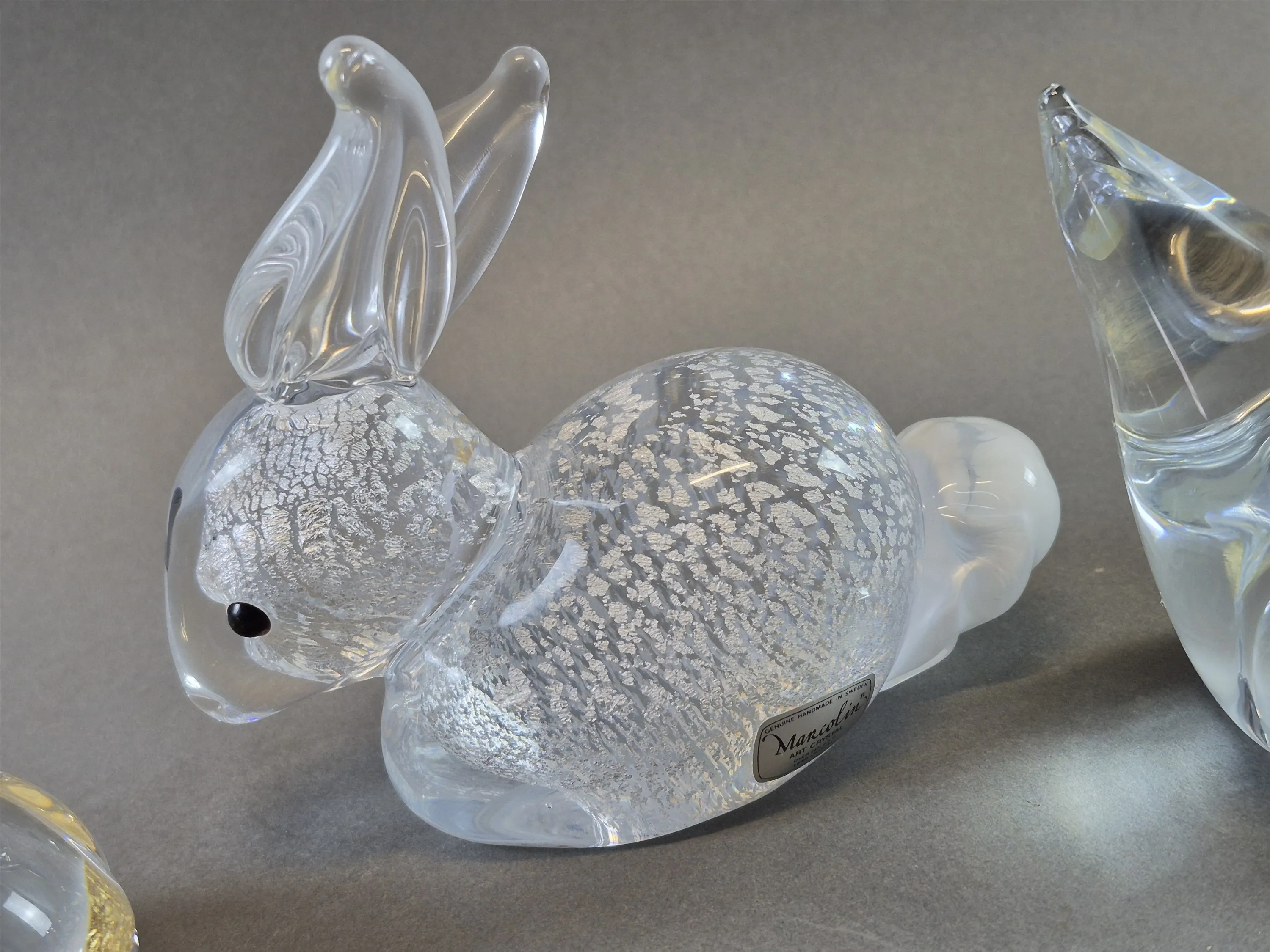 20398. Konstglas Marcolin 3 delar; kanin, mus och fågel, högsta höjd 12 cm