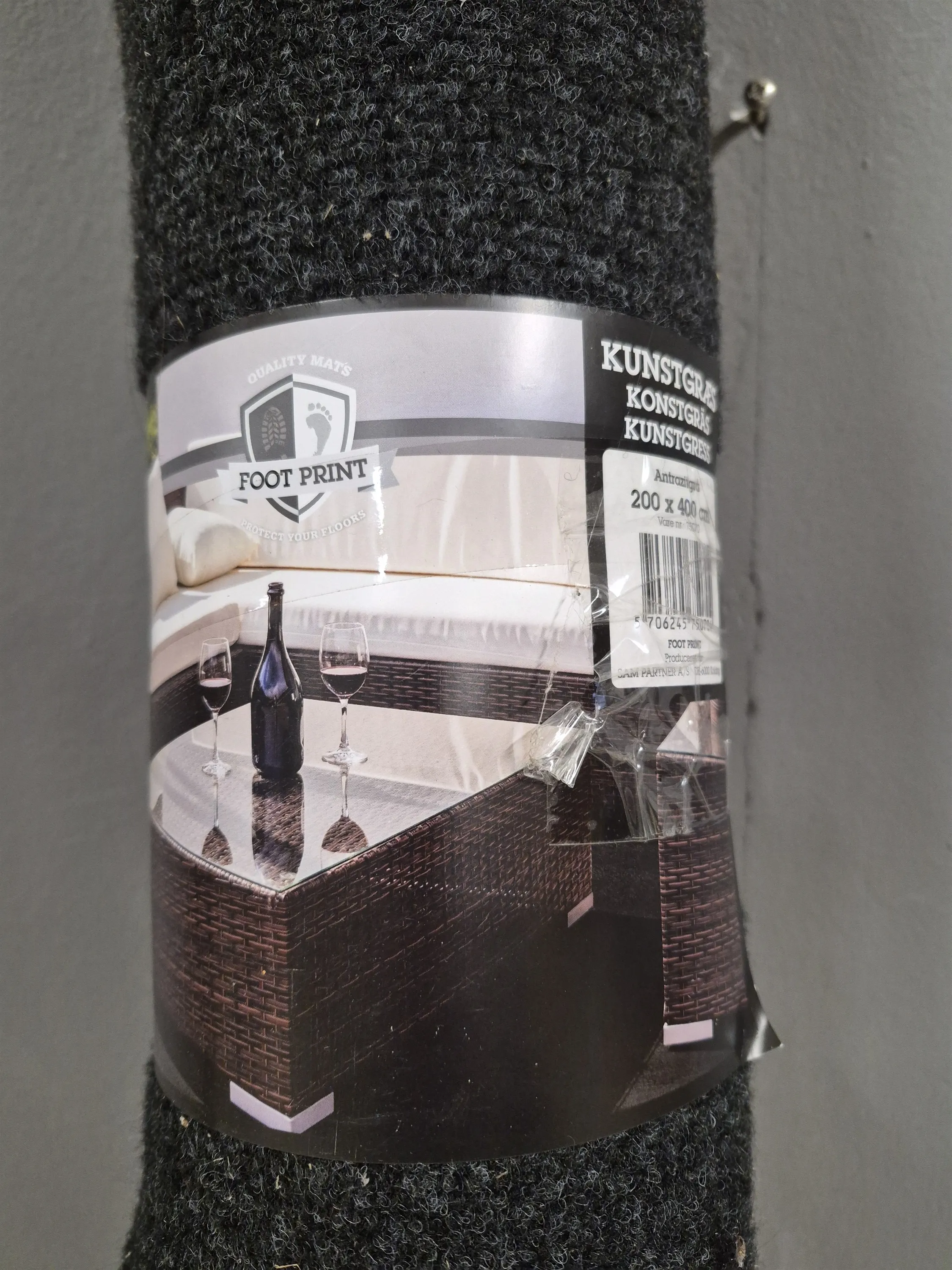 19528. Konstgräsmatta antrazitgrå, oanvänd, mått 200x400 cm
