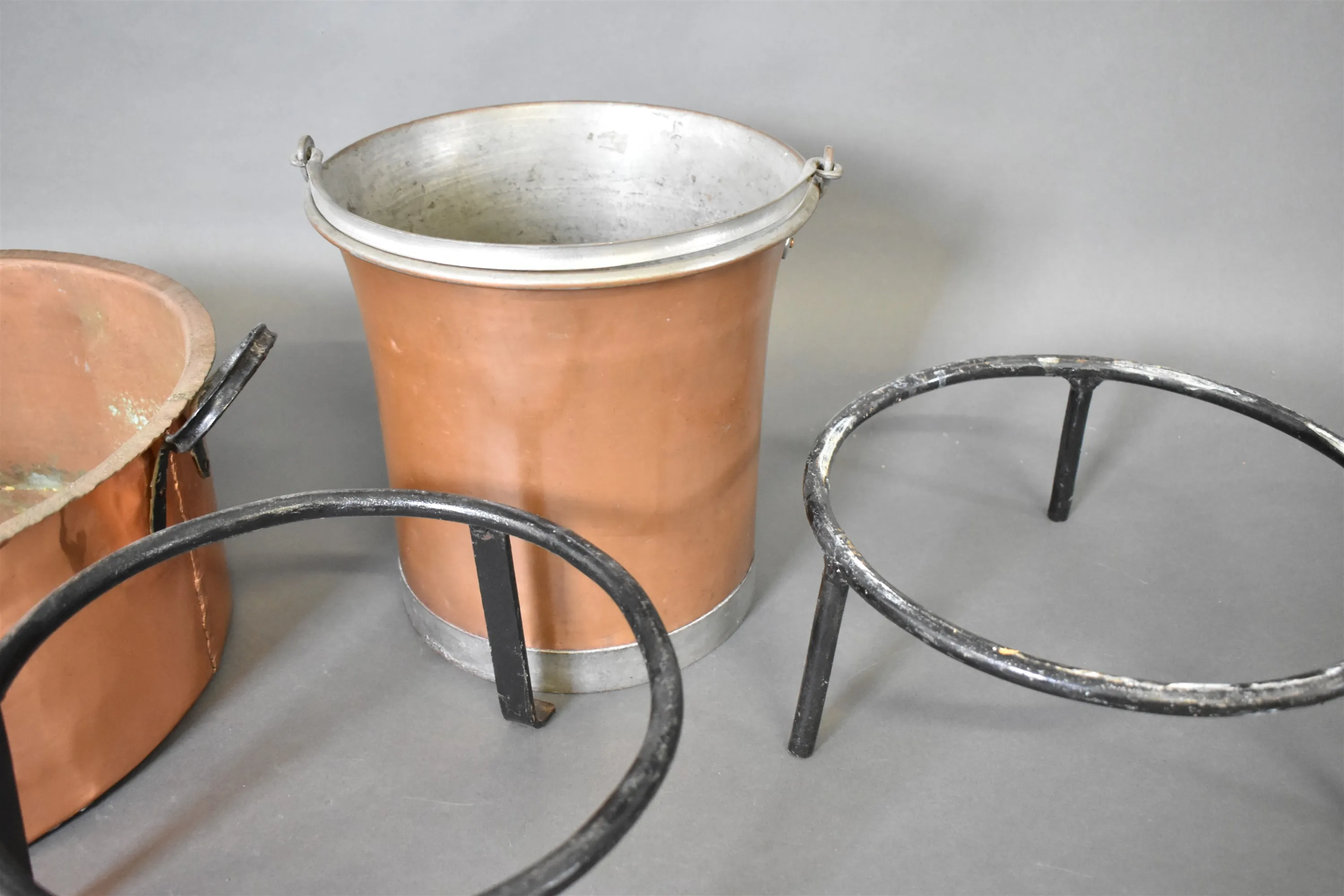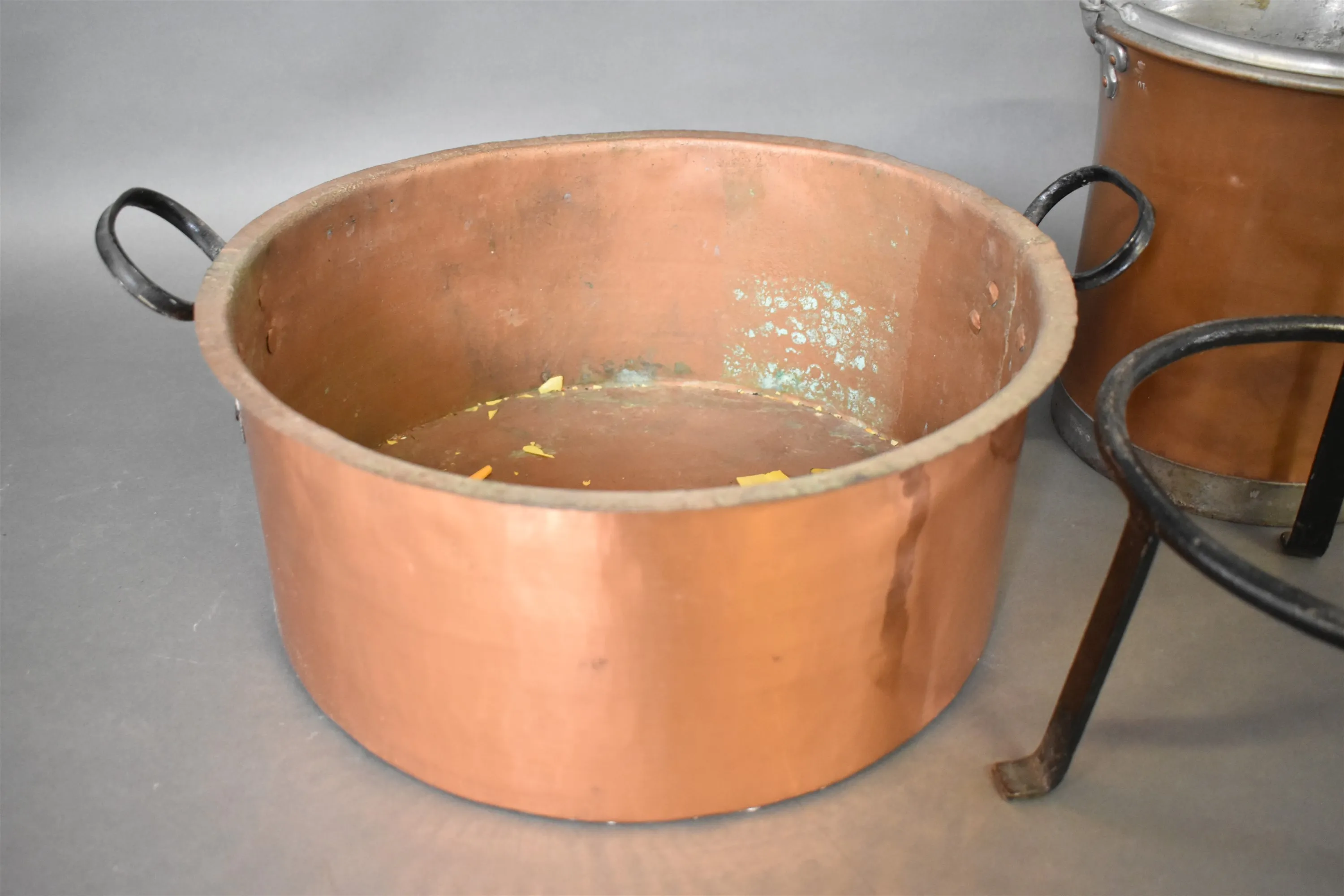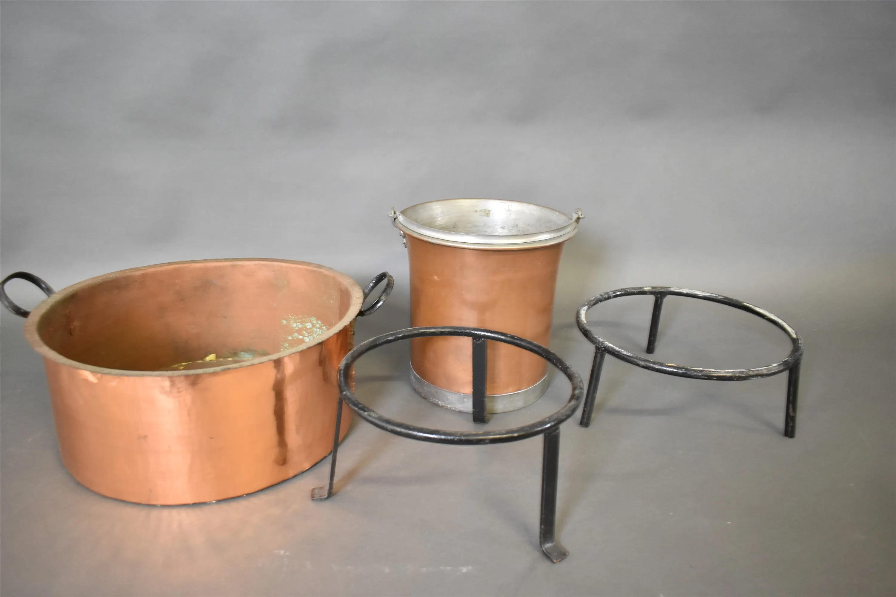 15161. Koppargryta, kopparhink och stödben 2 st, största diameter 43 cm
