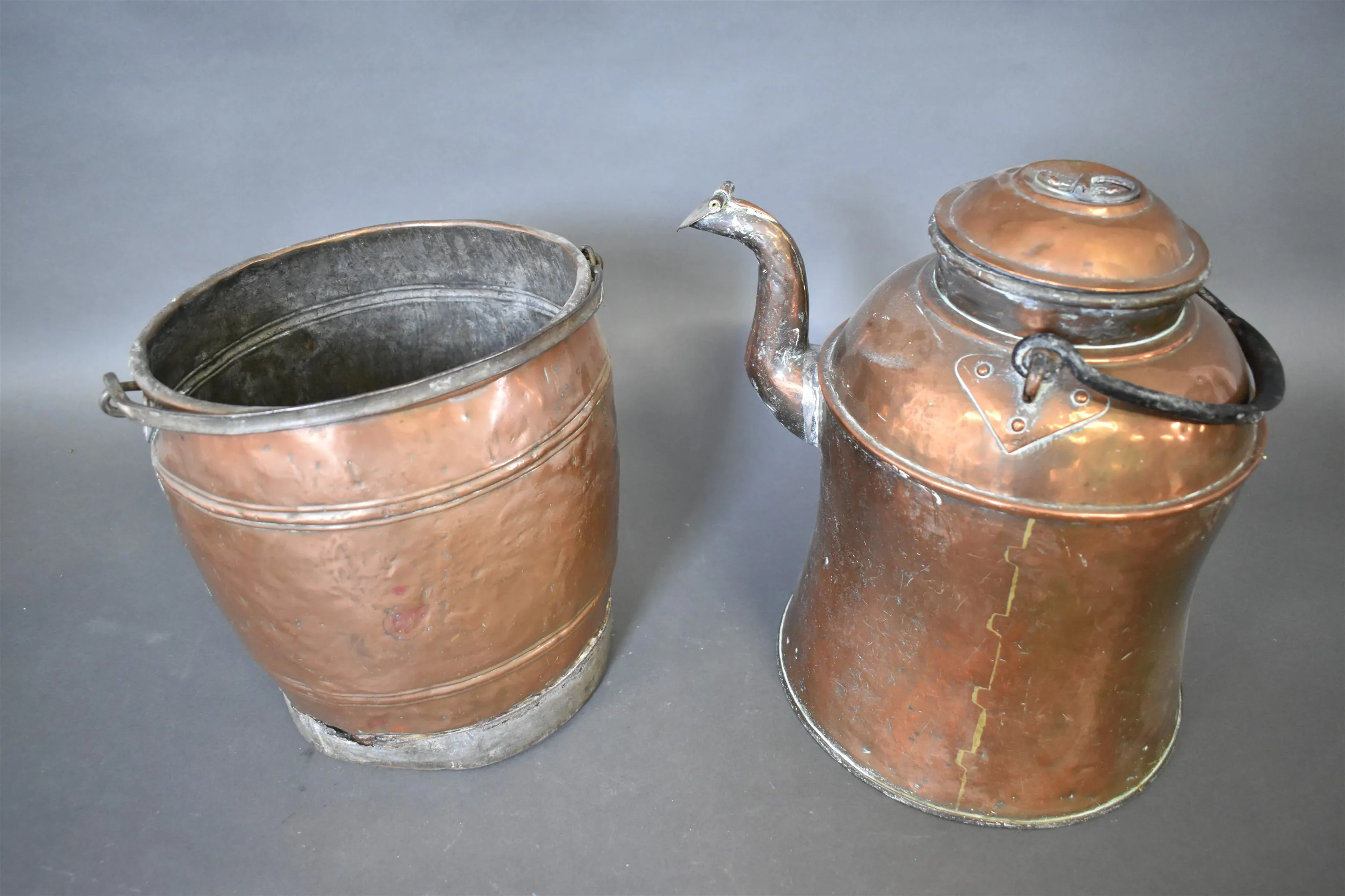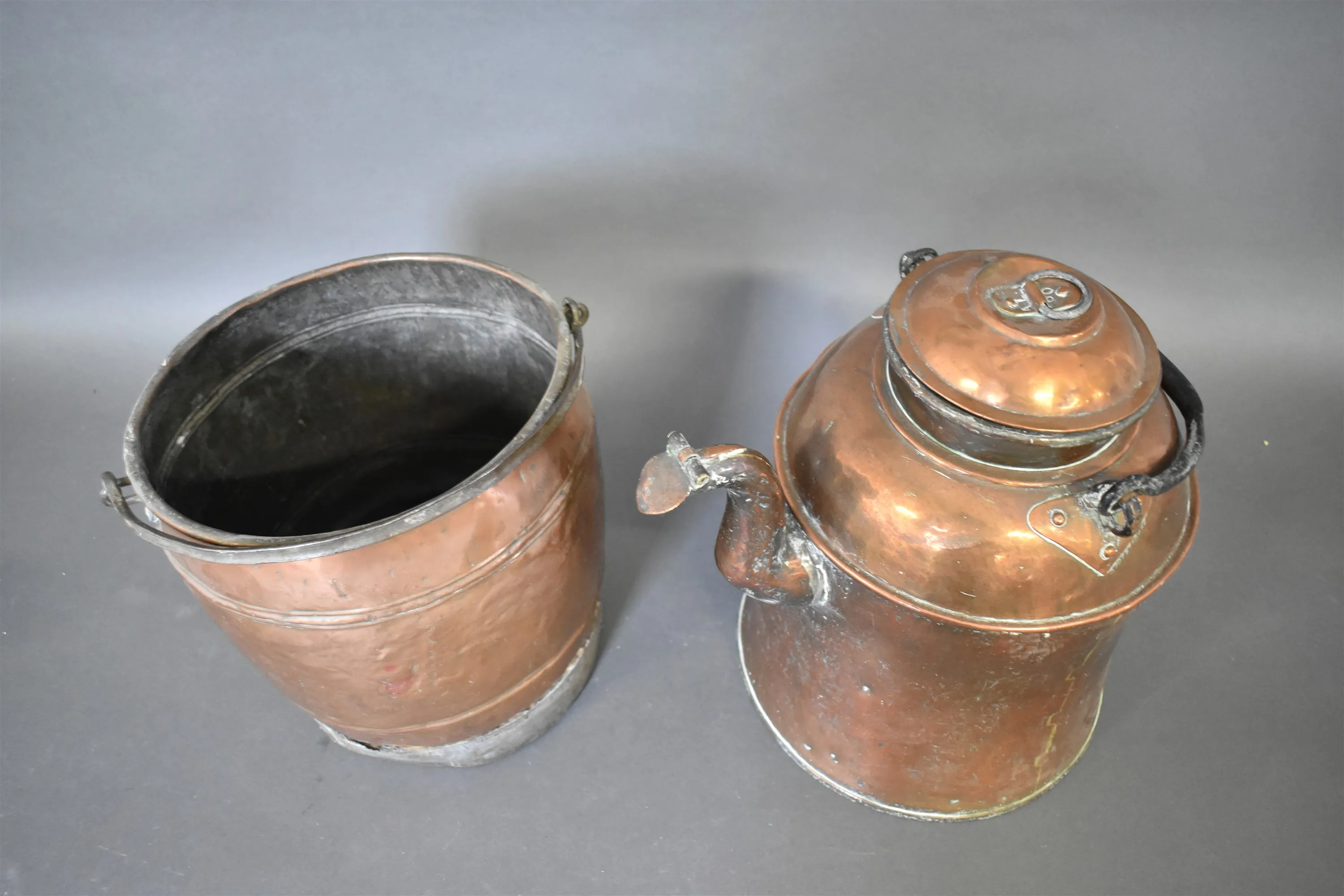 15545. Kopparspann & slåtterkanna, 1800-tal, högsta 28 cm