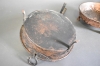 12612. Kopparstekjärn 2 st på fot, största diameter ca 34 cm
