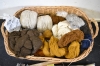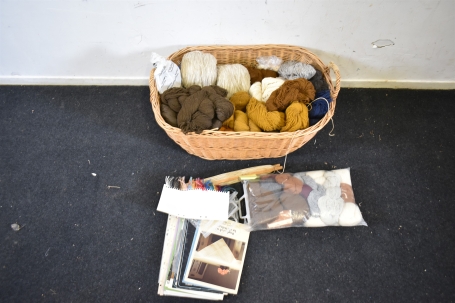 7055. Korg med garner, väv & sytillbehör, längd korg 78 cm