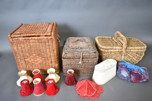 13616. Korgar 3 st & lampskärmar, högsta 44 cm