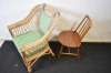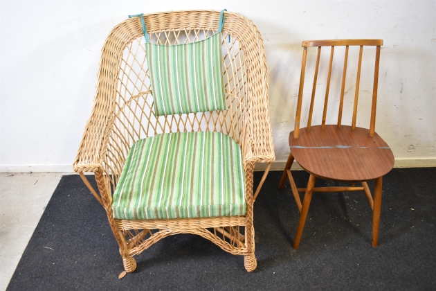 13659. Korgstol & pinnstol, högsta 95 cm, färg & skav på pinnstol