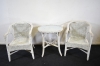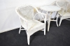 6159. Korgstolar 2 st och bord med glasskiva, höjd på bord 75 cm