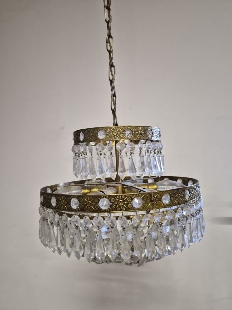 18230. Kristallampa med korgbotten, diameter 32 cm