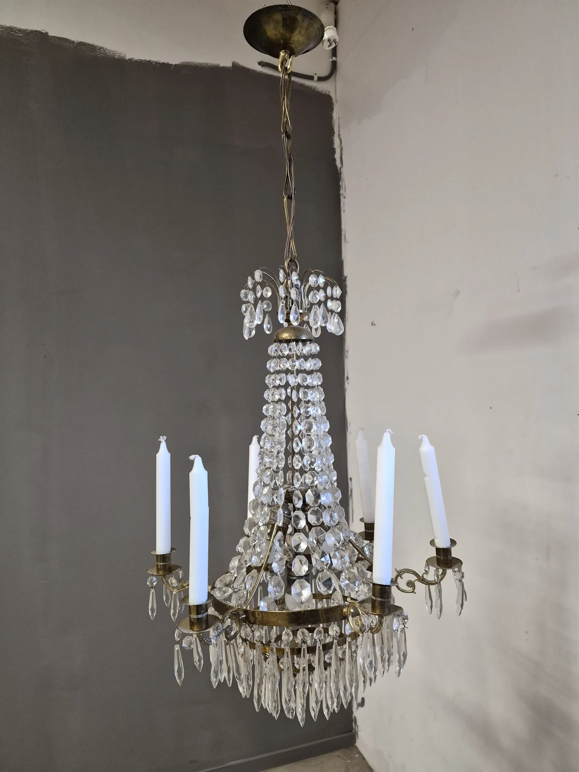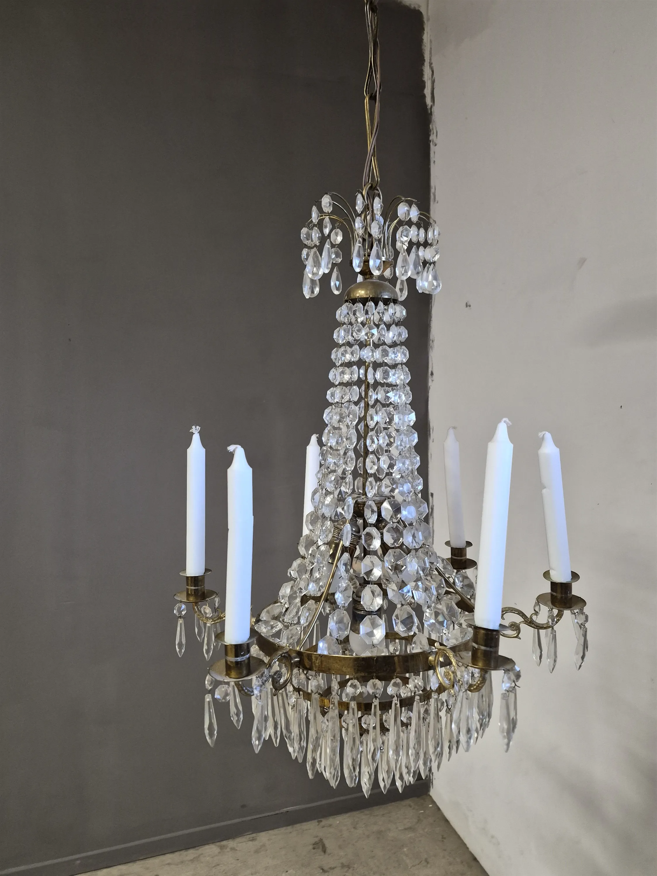18223. Kristallkrona empirestil, höjd utan kedja 74 cm