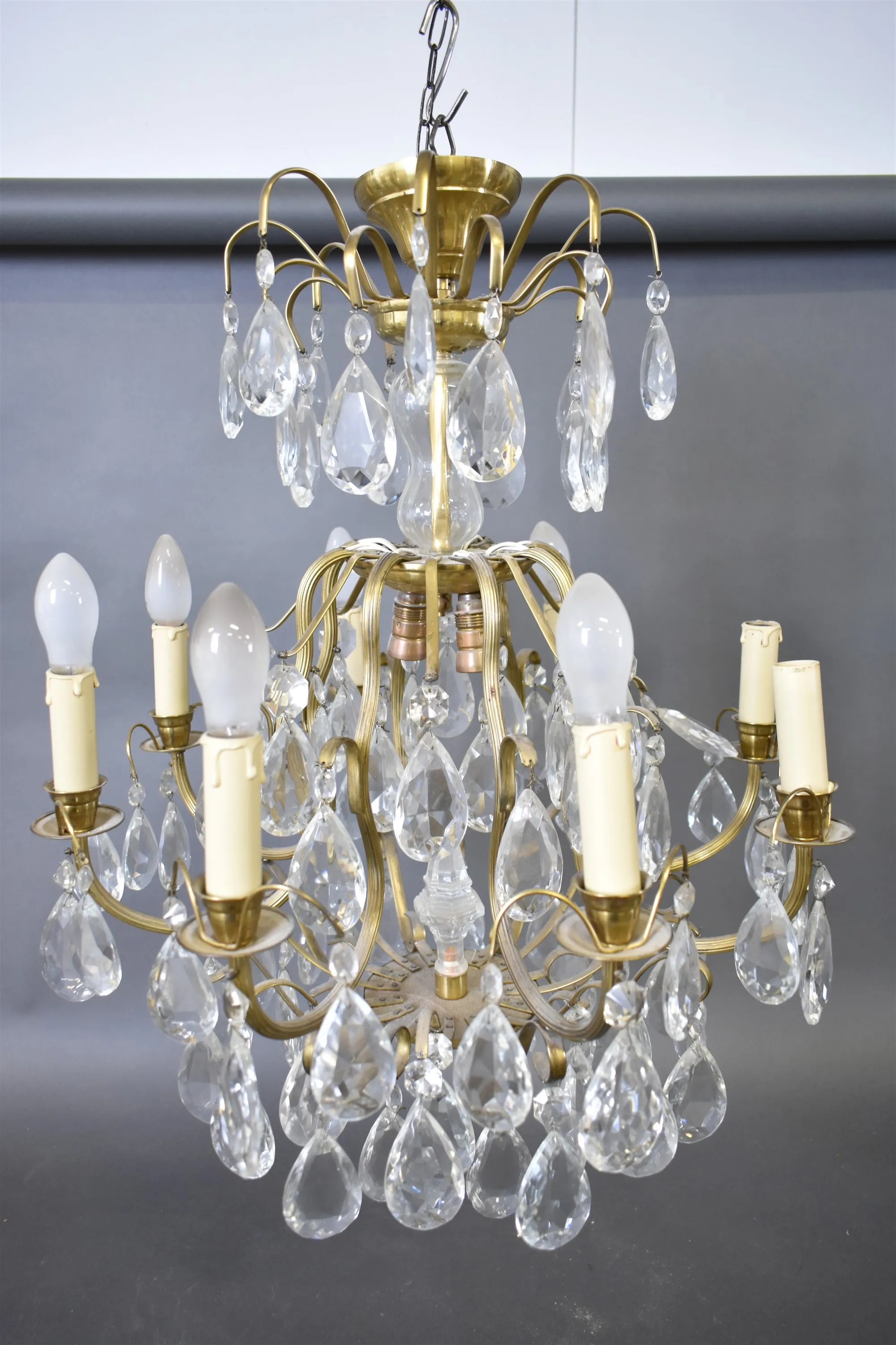 12805. Kristallkrona med dropp prismor, höjd ca 70 cm
