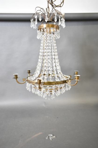 16695. Kristallkrona med ljusarmar, lösa prismor finns, höjd utan kedja 63 cm