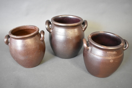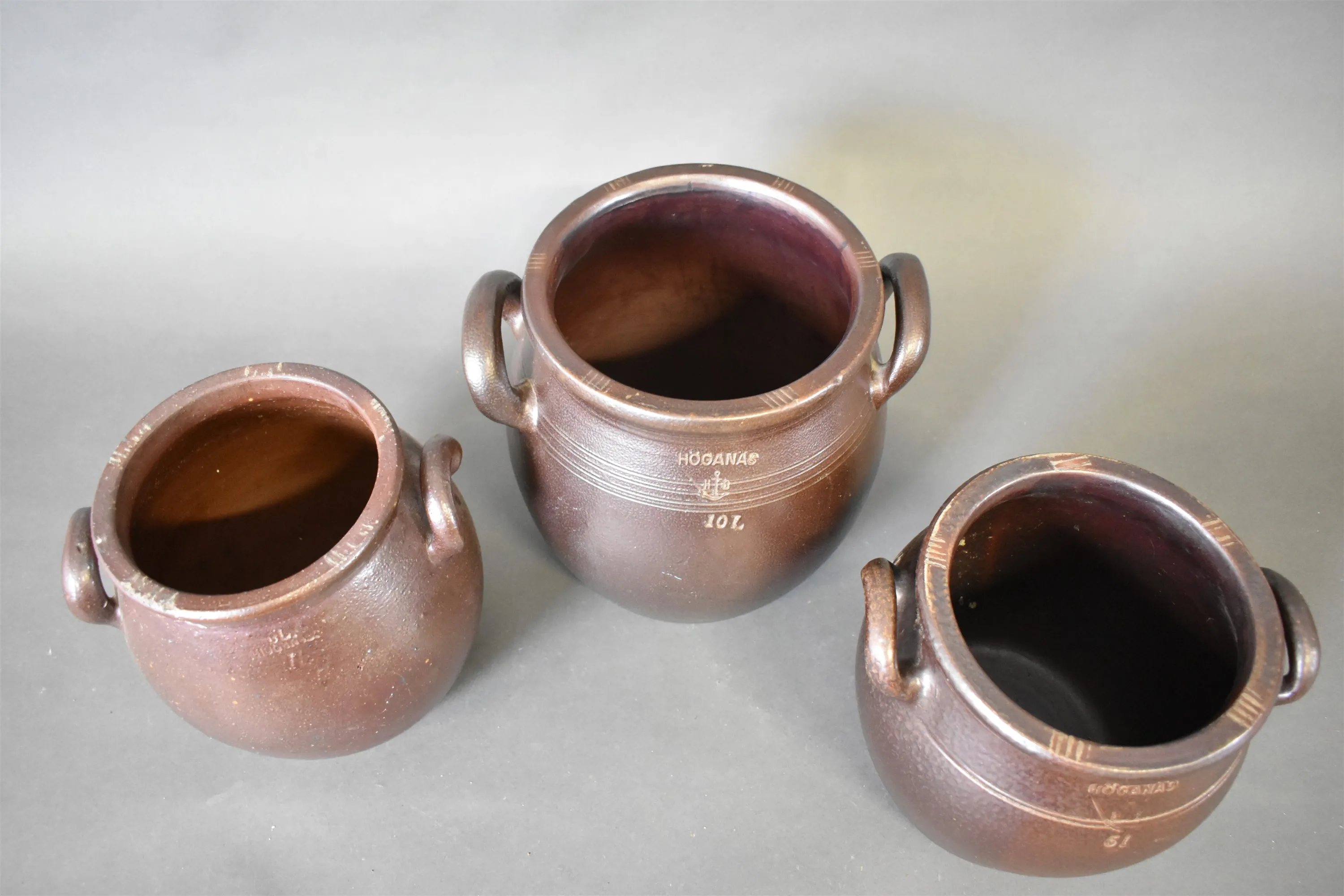 8317. Krus 3 st Höganäs, 10 liter + 2 st 6 liter högsta 29 cm