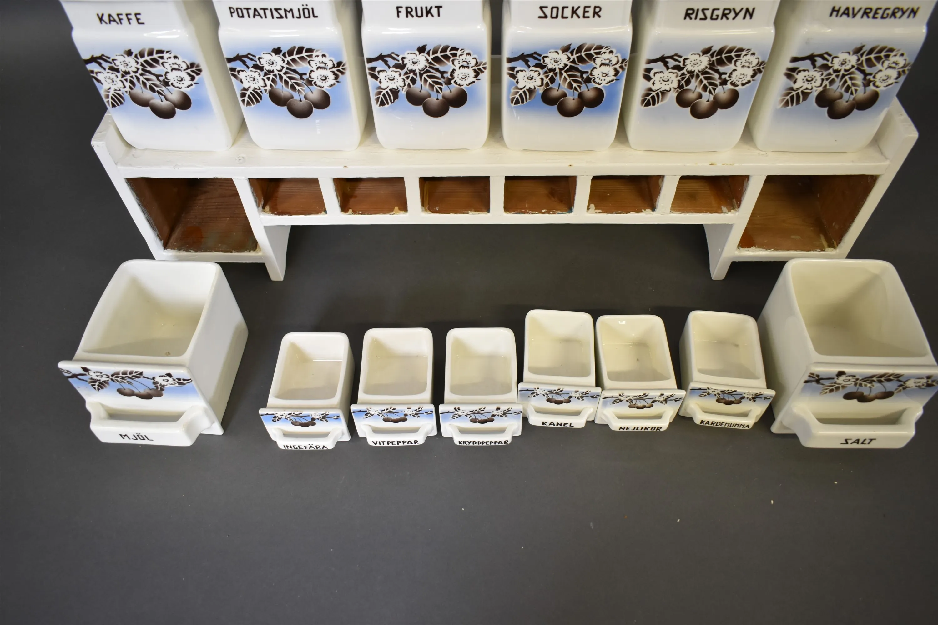 14913. Kryddhylla med skeppor & burkar längd hylla 74 cm