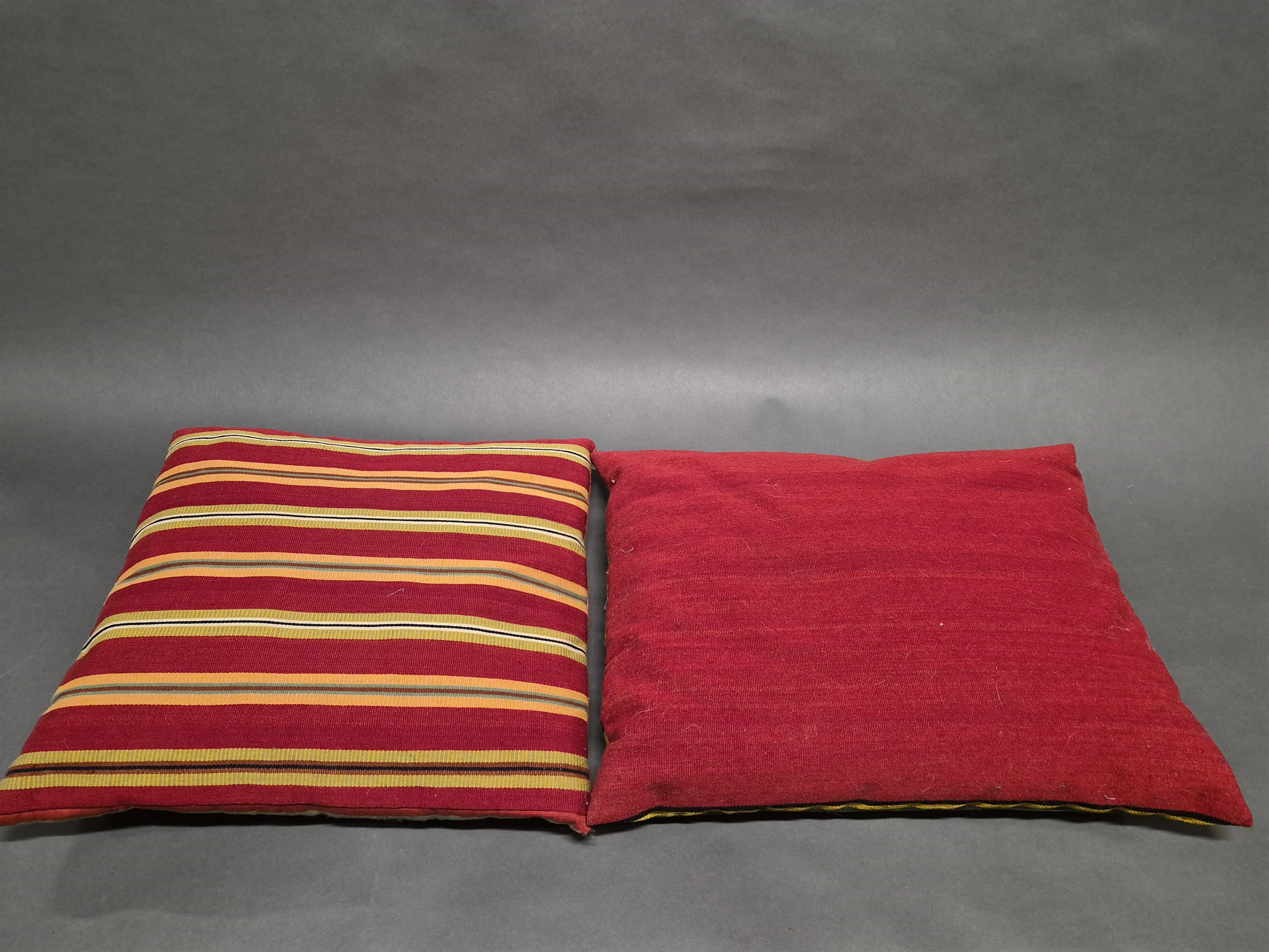 18142. Kuddar 2 st vävda, Viggmönster & Rölakan mått 45 x 55 cm, & 46 x 50 cm